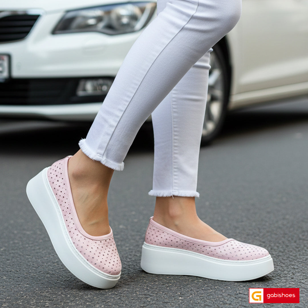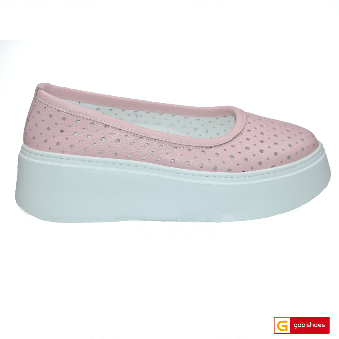 Caracteristici: balerini dama piele natutala pudra cu imprimeu gaurele