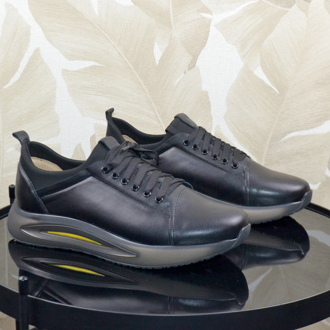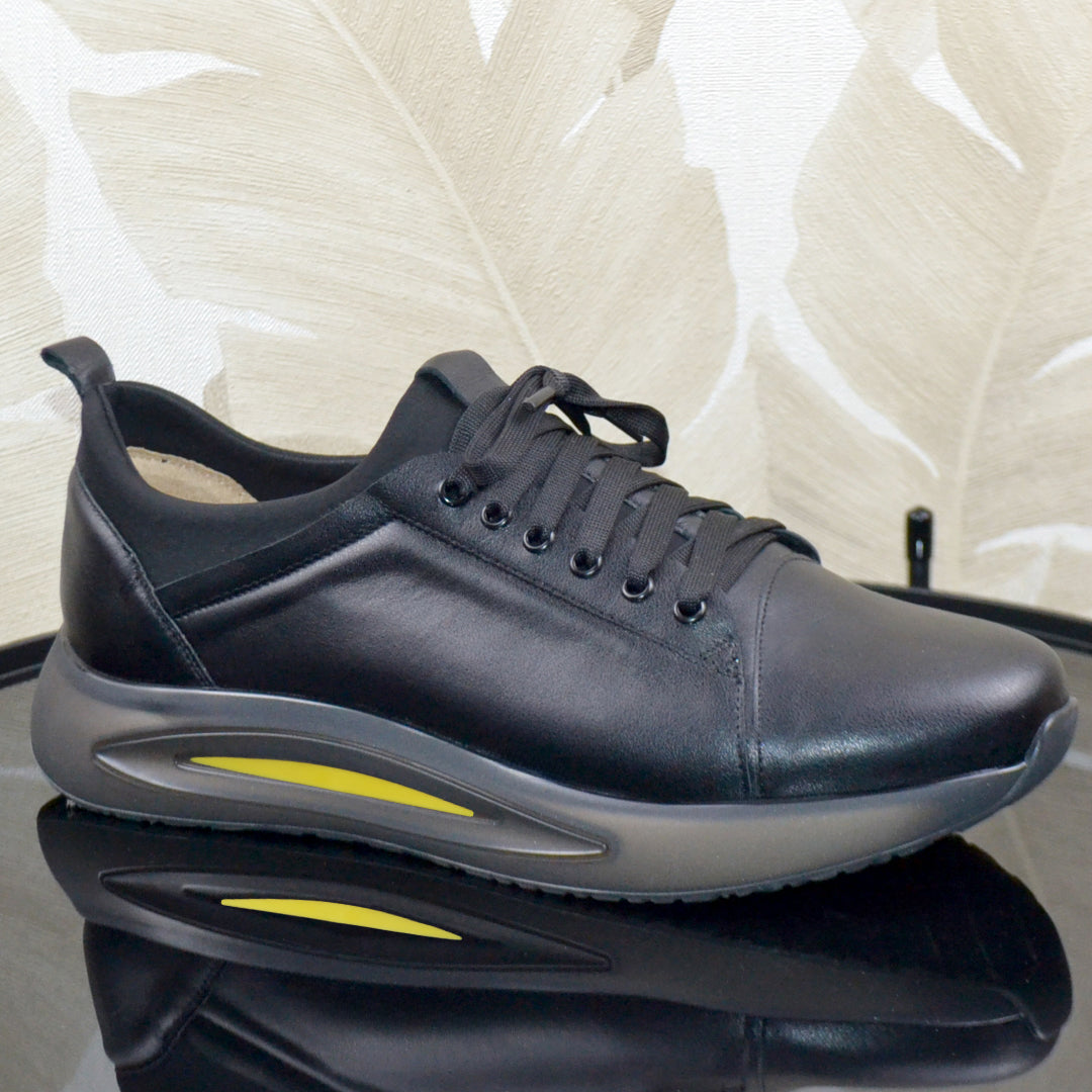 Caracteristici Pantofi sport piele naturala neagra si material strech negru