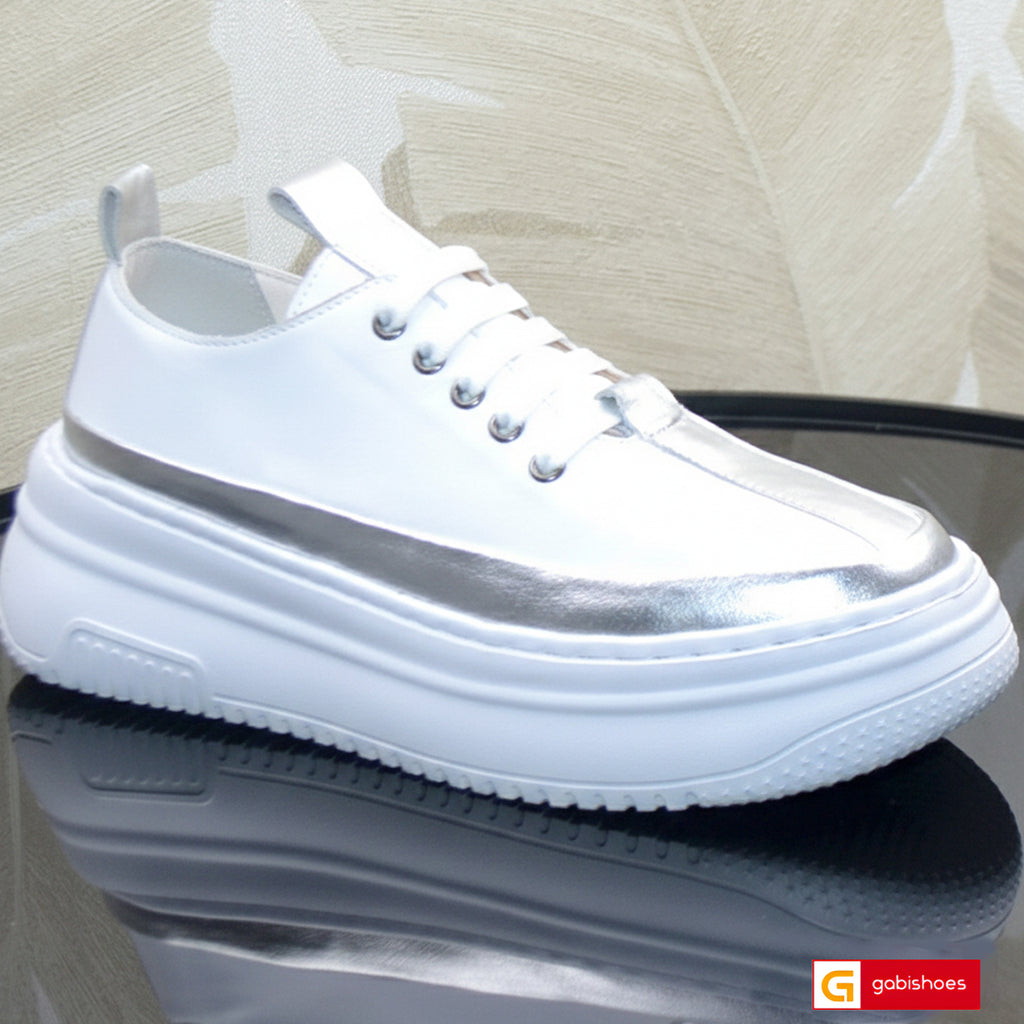 Pantofi Sport Piele Naturala Alb cu Argintiu Lorena 3075-4