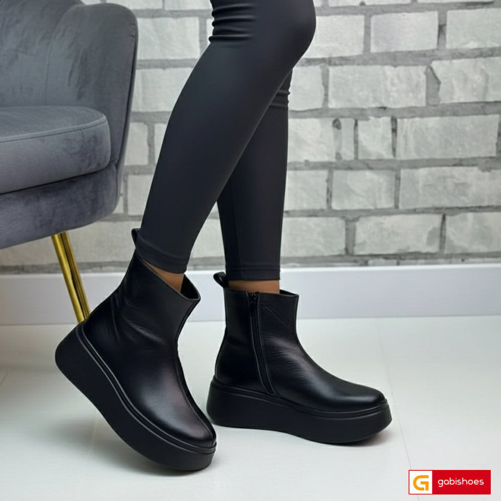 Ghete Casual Dama Piele Naturala Neagra Gabina 1065