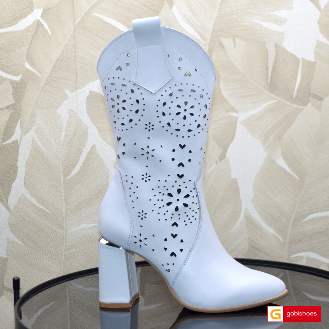 Ghete Dama Alba Perforate cu Fermoar Camelia 4102-1