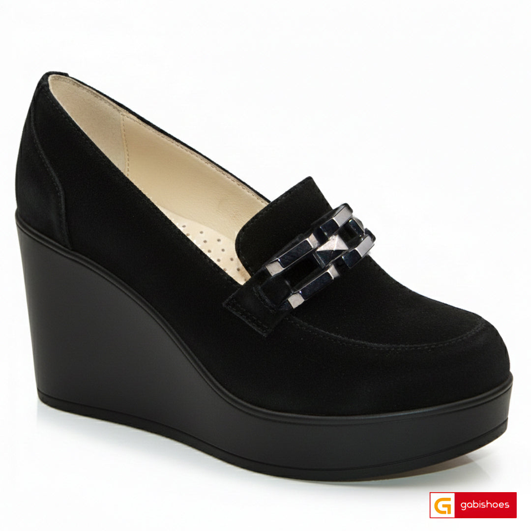 Cumparand acesti pantofi ortopedici puteti iesi in evidenta in orice imprejurime ! Pantofi Dama Piele Naturala Intoarsa Neagra Lorena 4217-4 ,Pantofii casual din piele  naturala sunt produsi in Romania de catre producatorul Gabi Shoes.