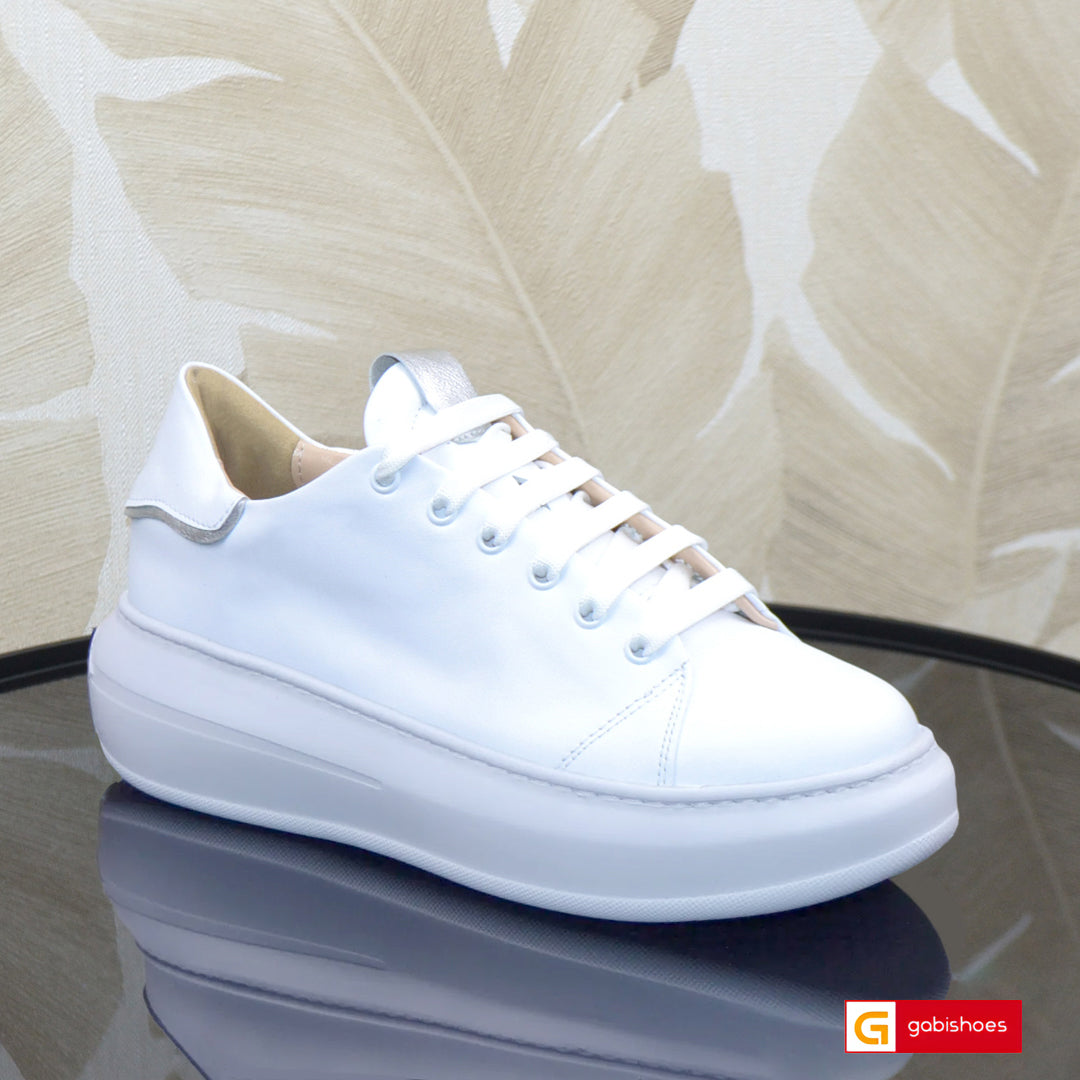 - Pantofi piele naturala alba si piele naturala argintie , pantofi cu siret