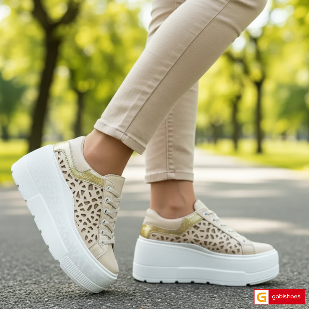 Cumparand acesti pantofi adidasi puteti iesi in evidenta in orice imprejurime !Pantofi Sport Dama Piele Naturala Bej cu Auriu Lorena 3962-4 sunt produsi in Romania de catre producatorul Gabi Shoes.