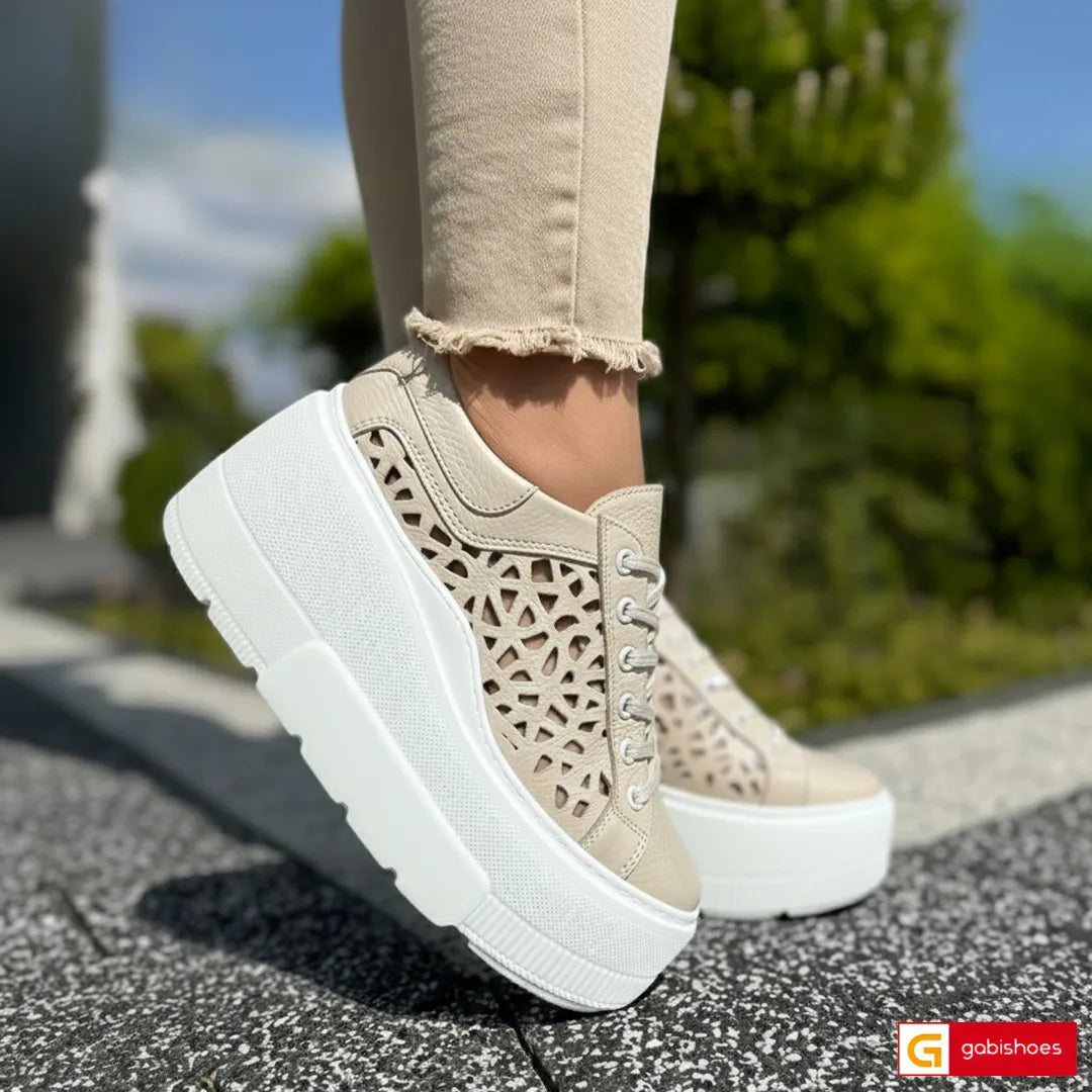 Cumparand acesti pantofi adidasi puteti iesi in evidenta in orice imprejurime !Pantofi Sport Dama Piele Naturala Bej Lorena 3962-2 sunt produsi in Romania de catre producatorul Gabi Shoes.
