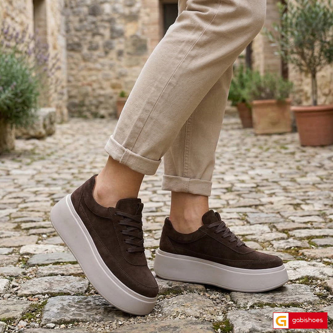 Caracteristici: Pantofi sport piele naturala intoarsa maro