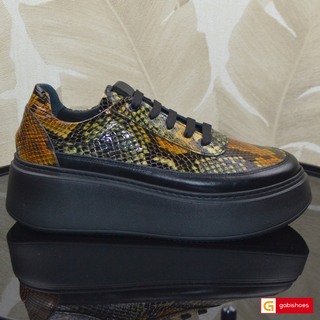 Caracteristici Pantofi sport piele naturala neagra cu imprimeu multicolor