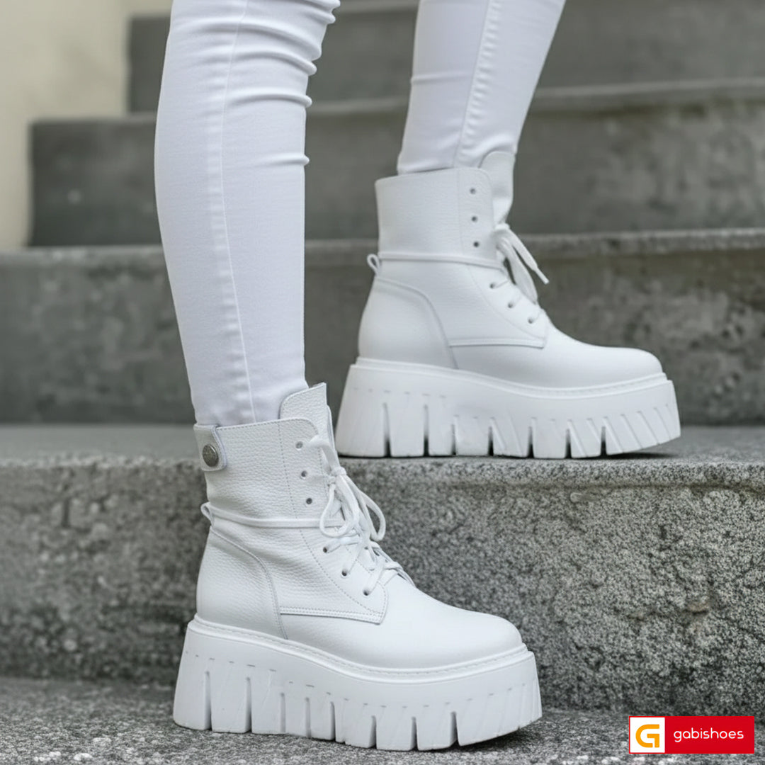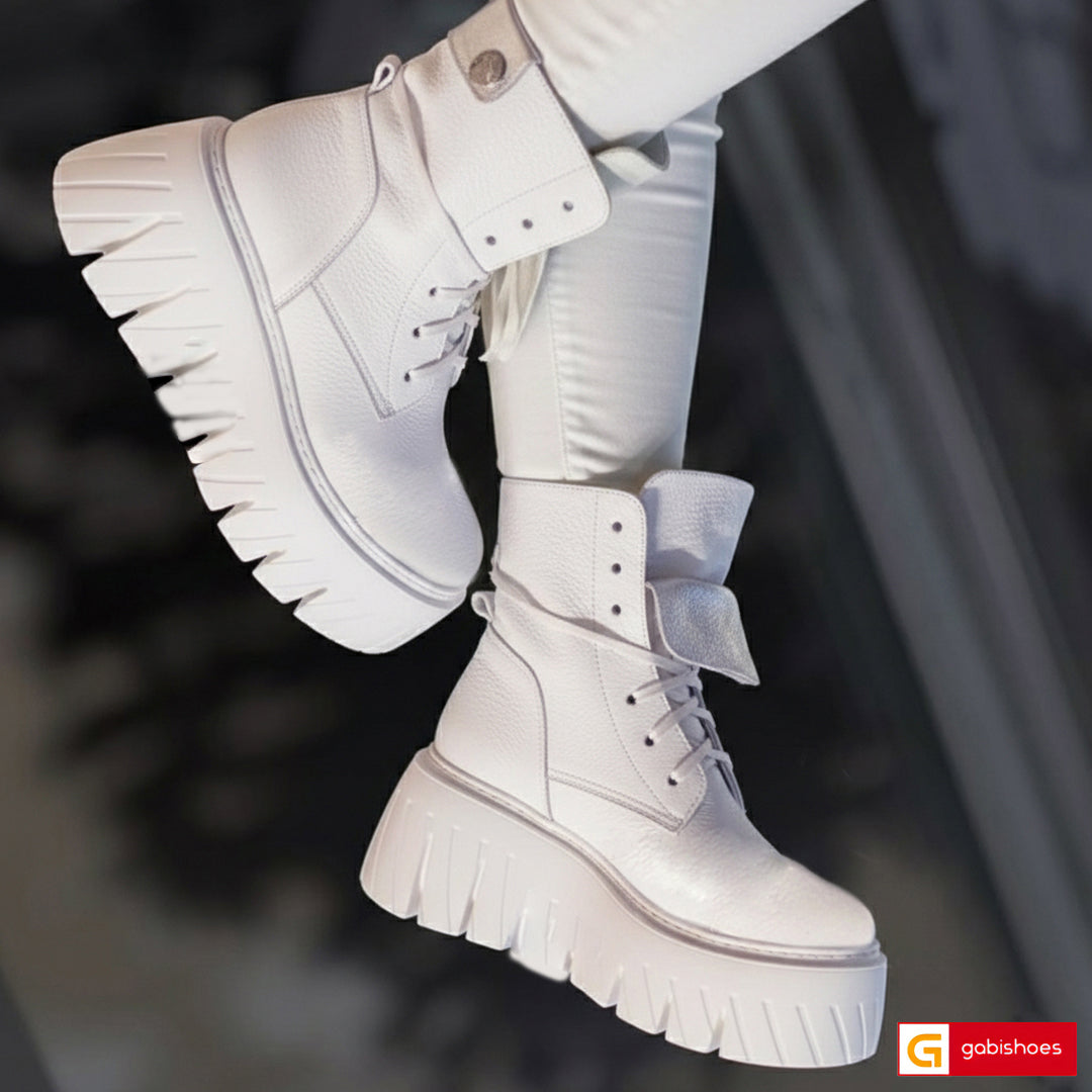 - Ghete piele naturala alba , sistem de inchidere cu siret
