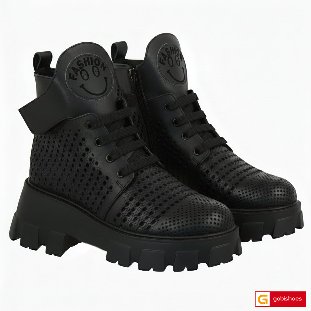 - Ghete piele naturala neagra cu model si perforata