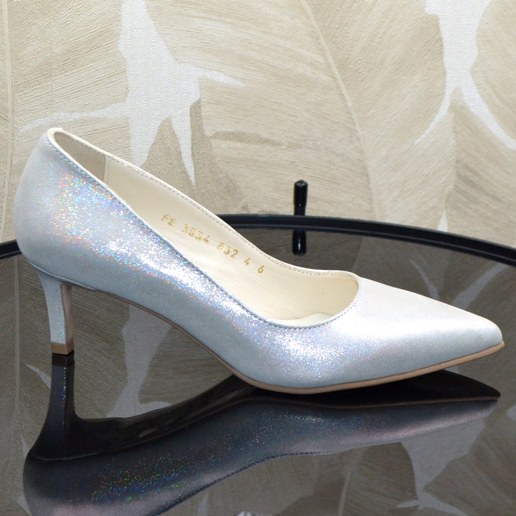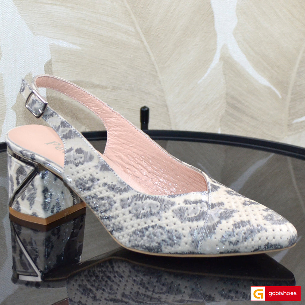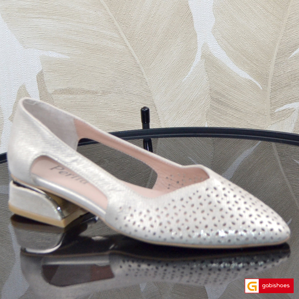 Pantofi Office Dama Piele Naturala Alb Cu Argintiu Lorena 111