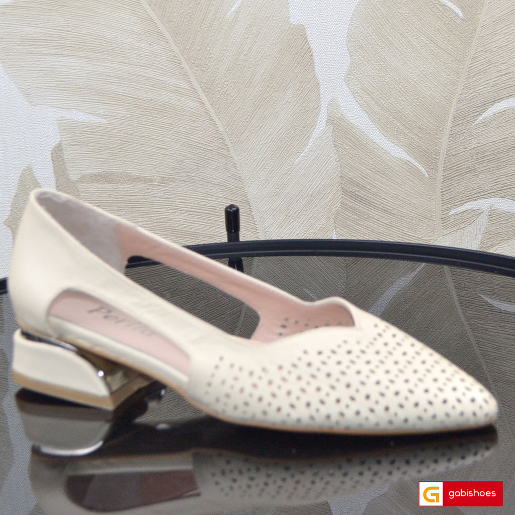 Pantofi Office Dama Piele Naturala Bej cu Auriu Lorena 3976-1