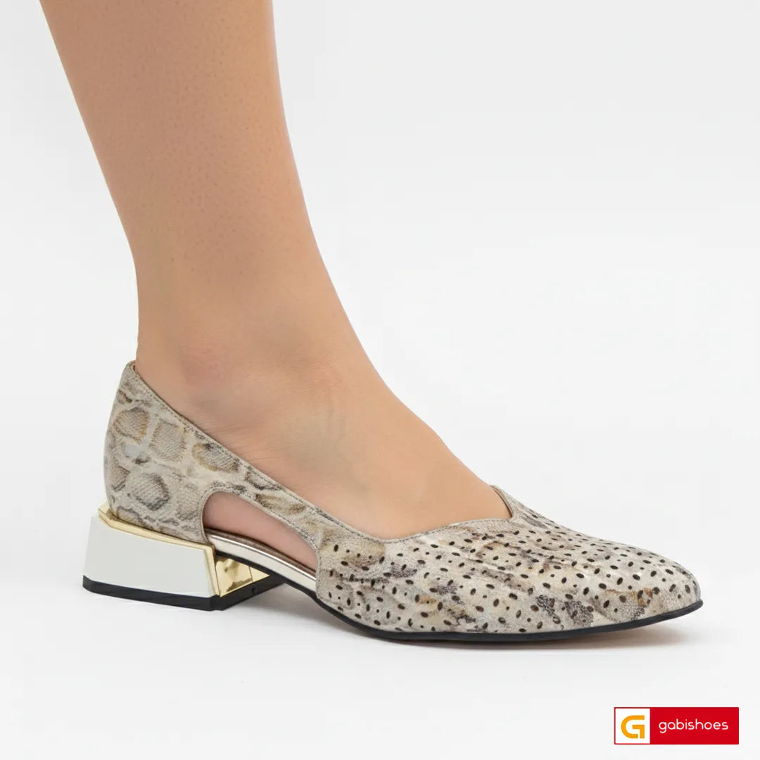 - Pantofi piele naturala bej multicolor cu model gaurele