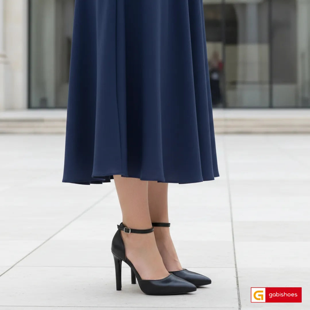 - Sanda piele naturala neagra cu bareta de 1 cm ,toc imbracat in piele