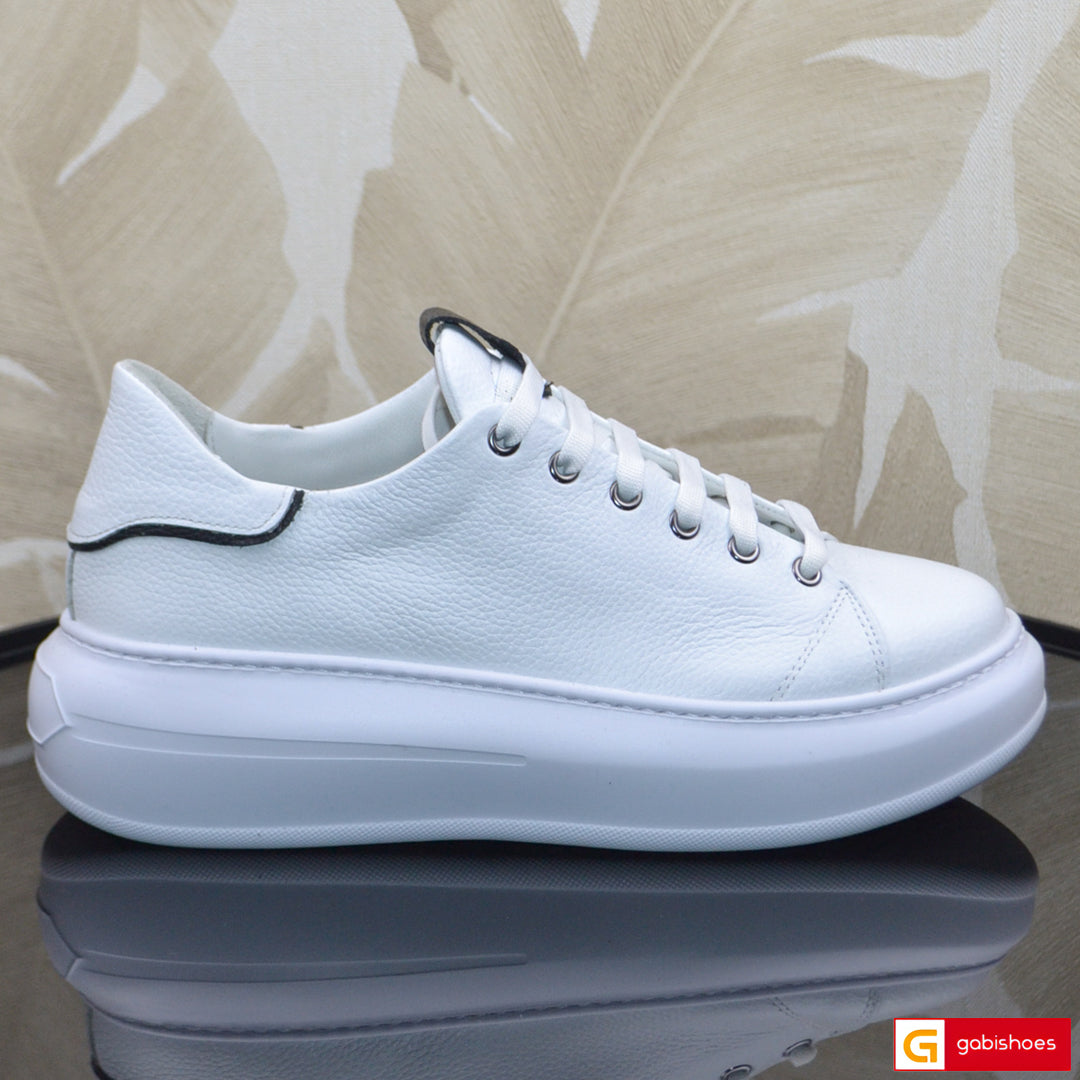 Caracteristici Pantofi sport piele naturala alba cu piele naturala neagra