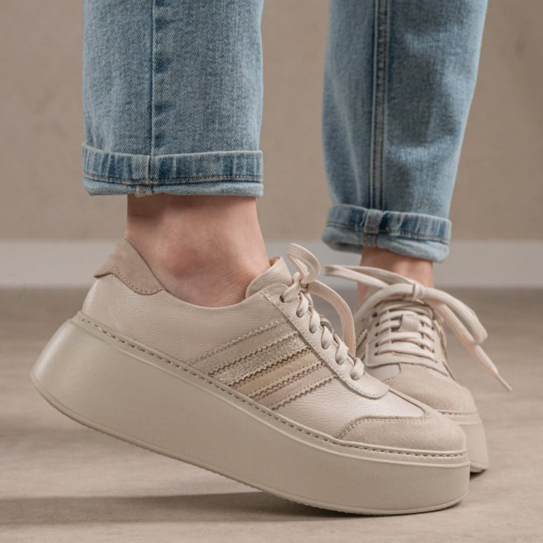 Caracteristici Pantofi sport piele naturala bej si piele nataurala intoarsa taupe