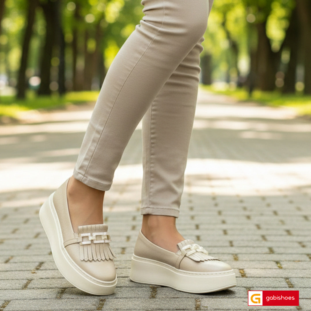 Cumparand acesti pantofi adidasi puteti iesii in evidenta in orice imprejurime !  Pantofi Sport Dama Piele Naturala Bej Lorena 3868-2027 ,Pantofii sport din piele  naturala sunt produsi in Romania de catre producatorul Gabi Shoes