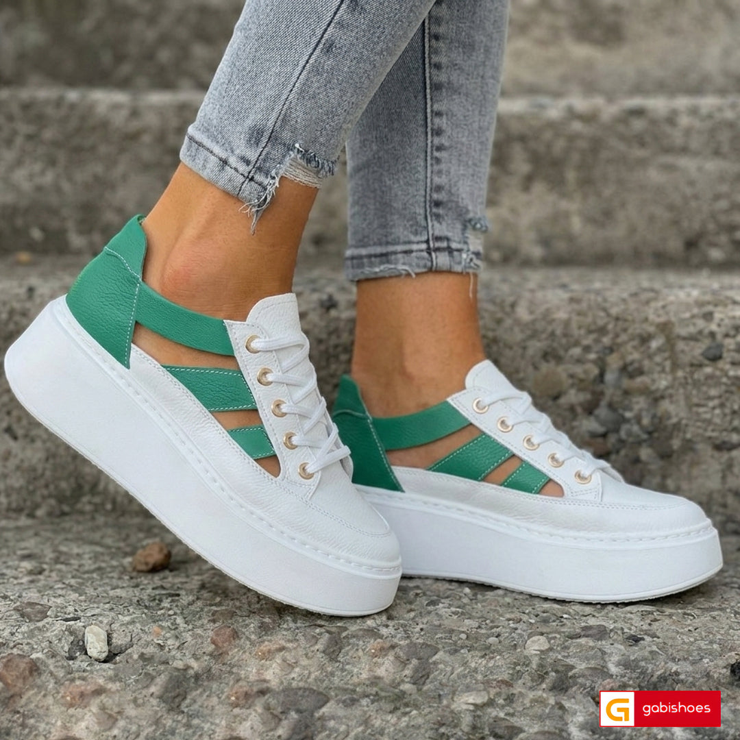 Cumparand acesti pantofi adidasi puteti iesii in evidenta in orice imprejurime !Pantofi Sport Dama Piele Naturala Alb cu Verde Lorena 3742-3 sunt produsi de producatorul Roman Gabi Shoes
