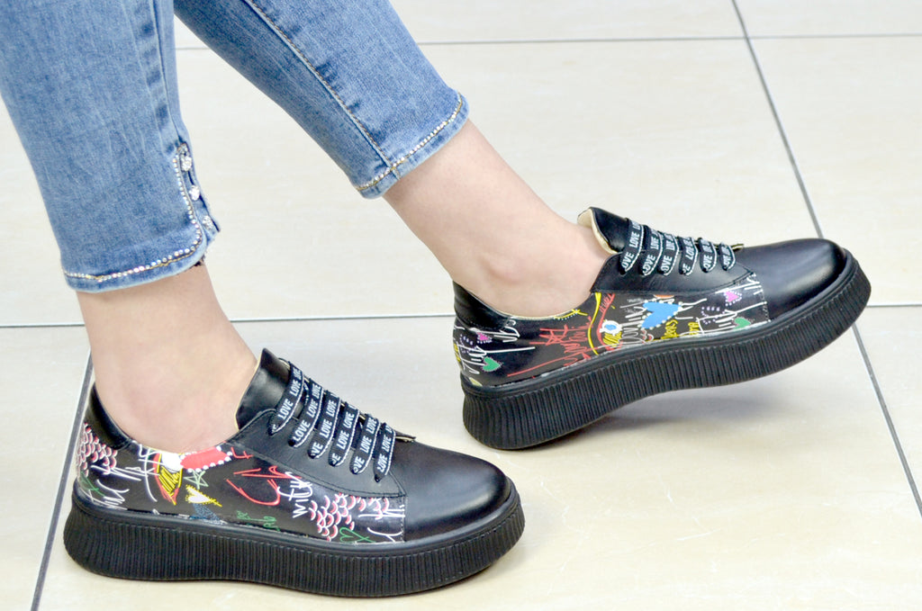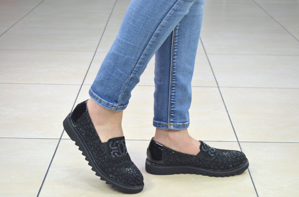 Pantofi Casual Dama Negru Cu Imprimeu NATY