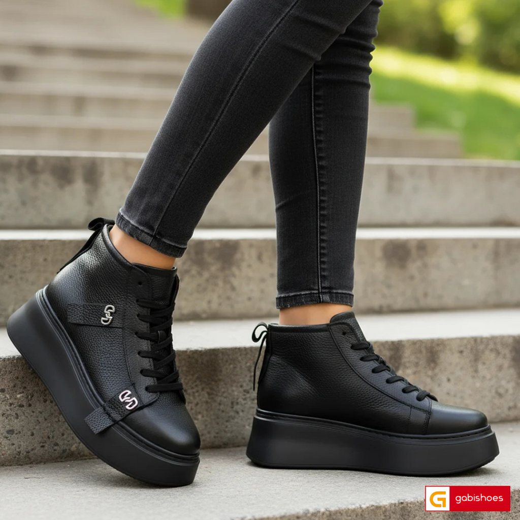 Pantofi Sport Piele Naturala Neagra Gabinna 4005-1