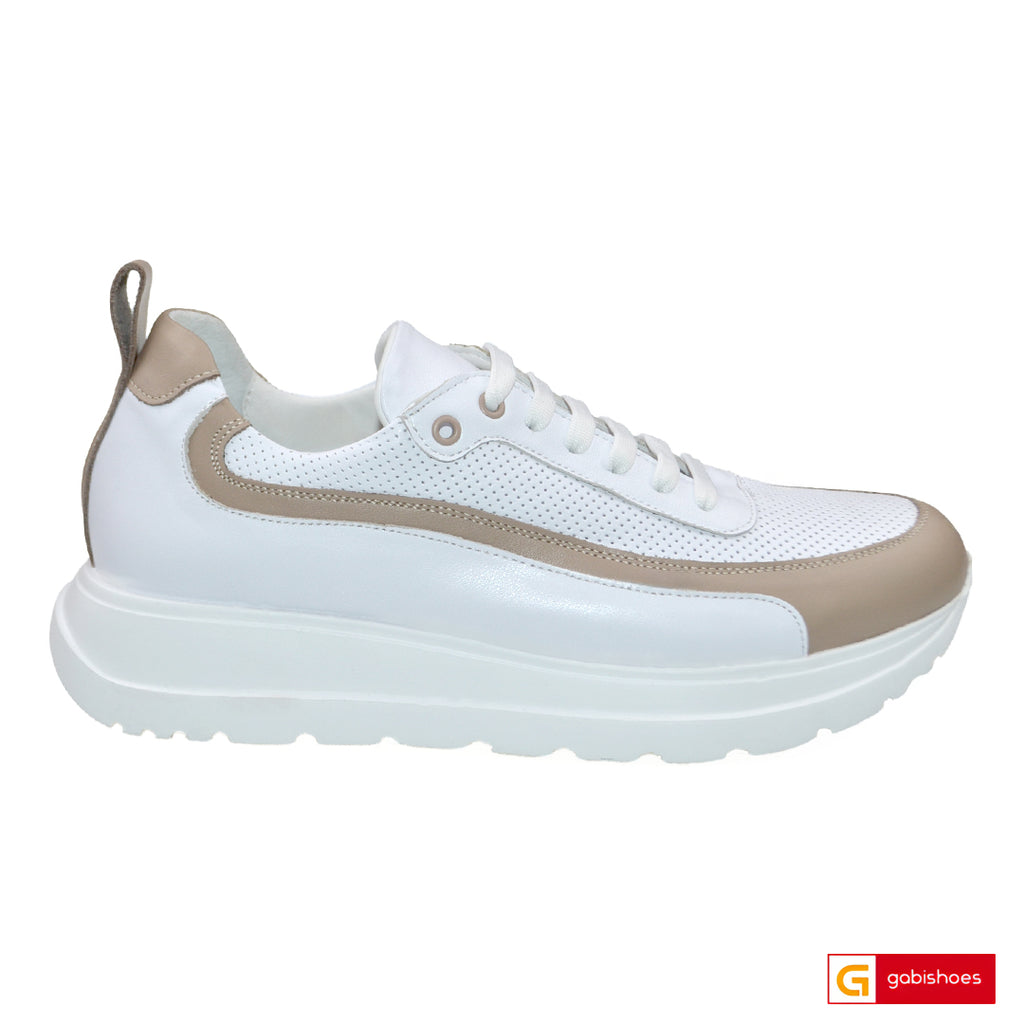 Sneakers Piele Naturala Alba cu Taupe Tokio 3829-1