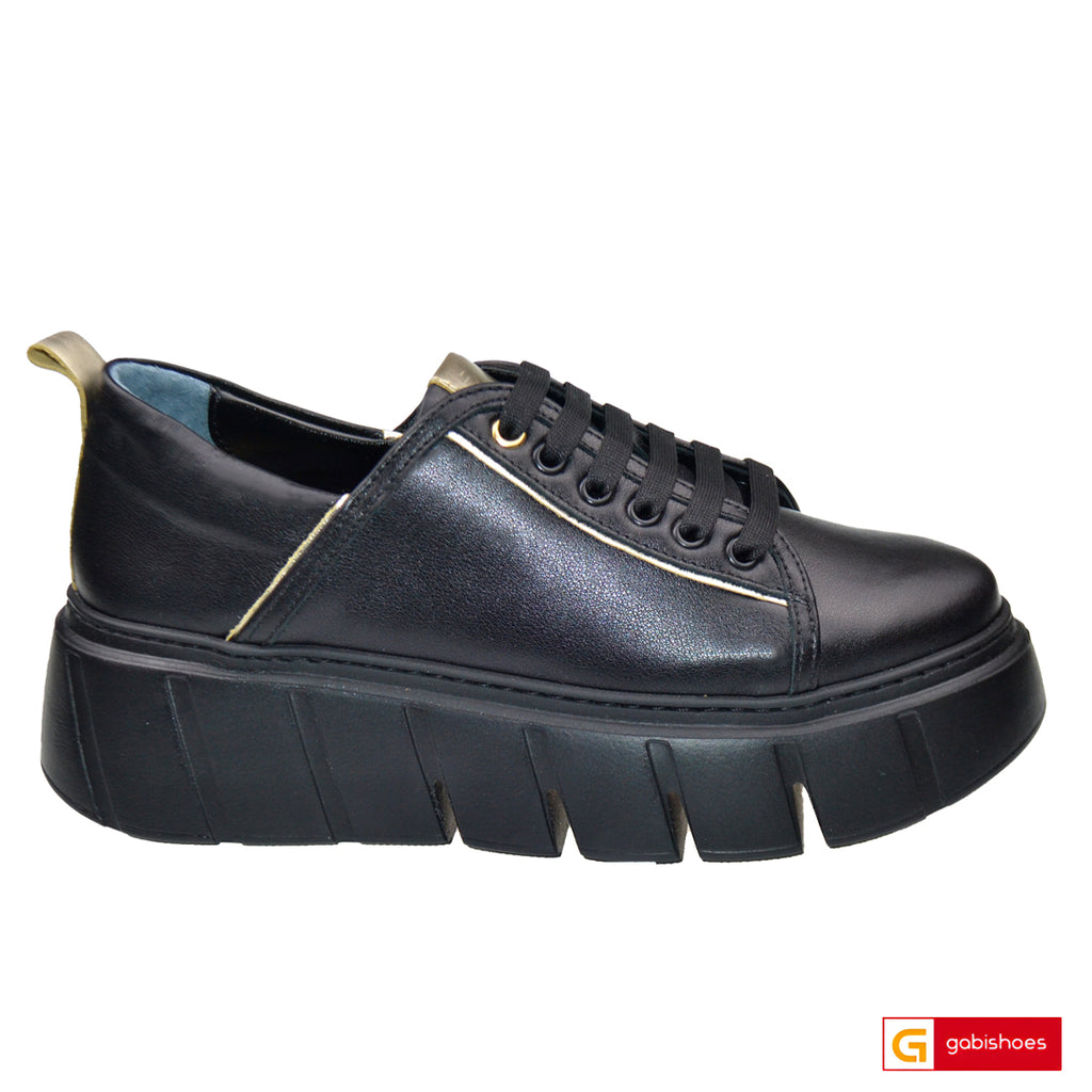 Pantofi Sport Piele Naturala Negru cu Auriu Lorena 3611-2