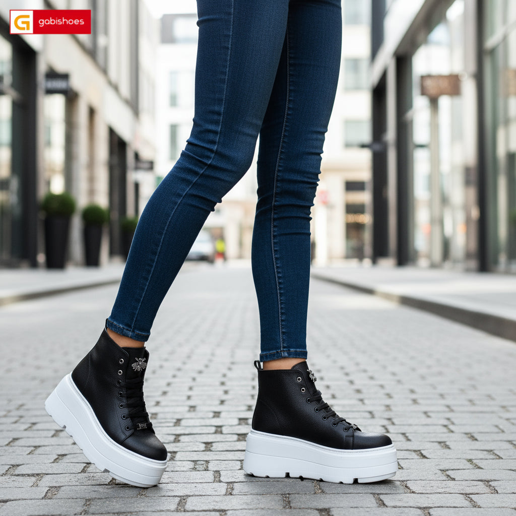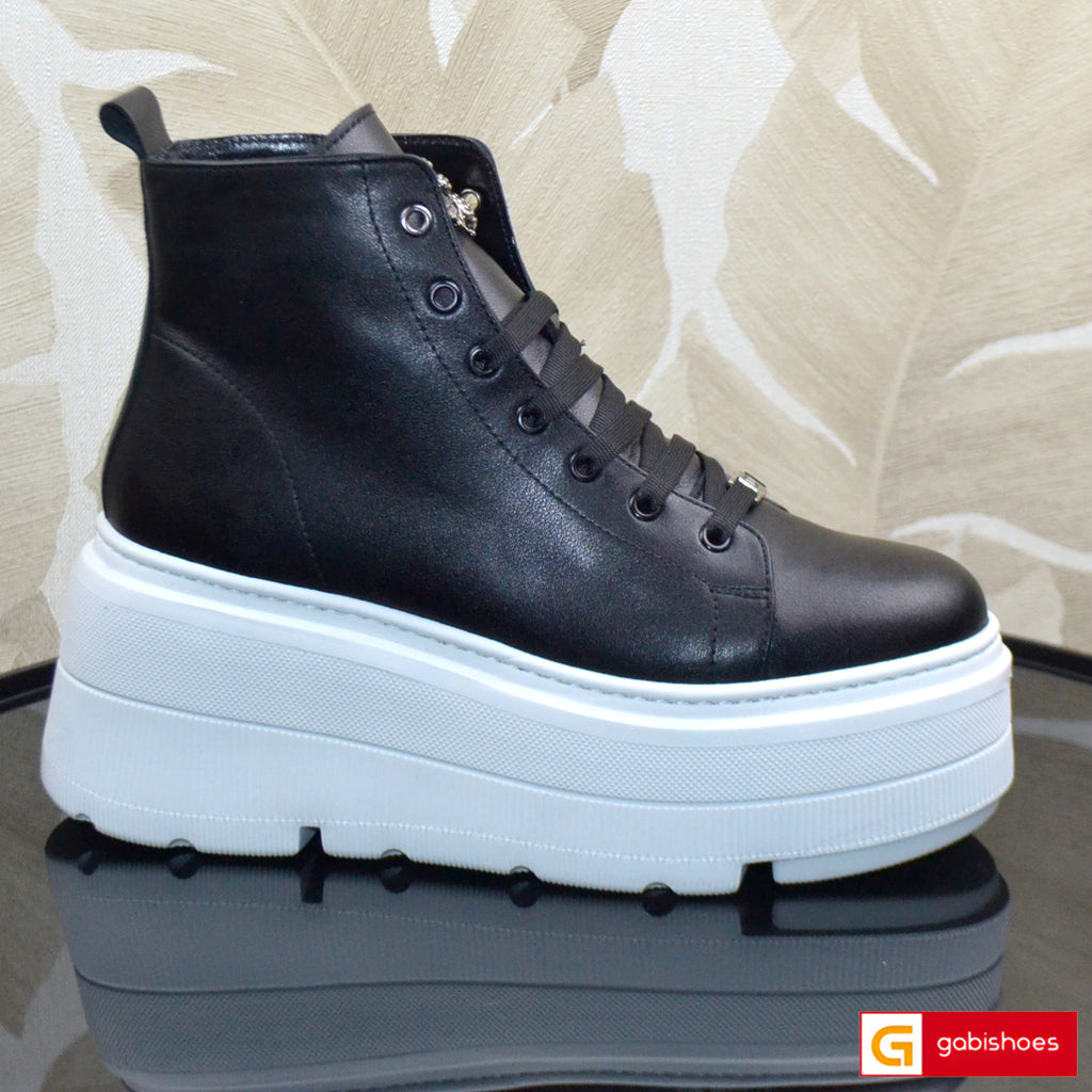Ghete Sport Dama Piele Naturala Negru cu Alb Lorena 3583-3