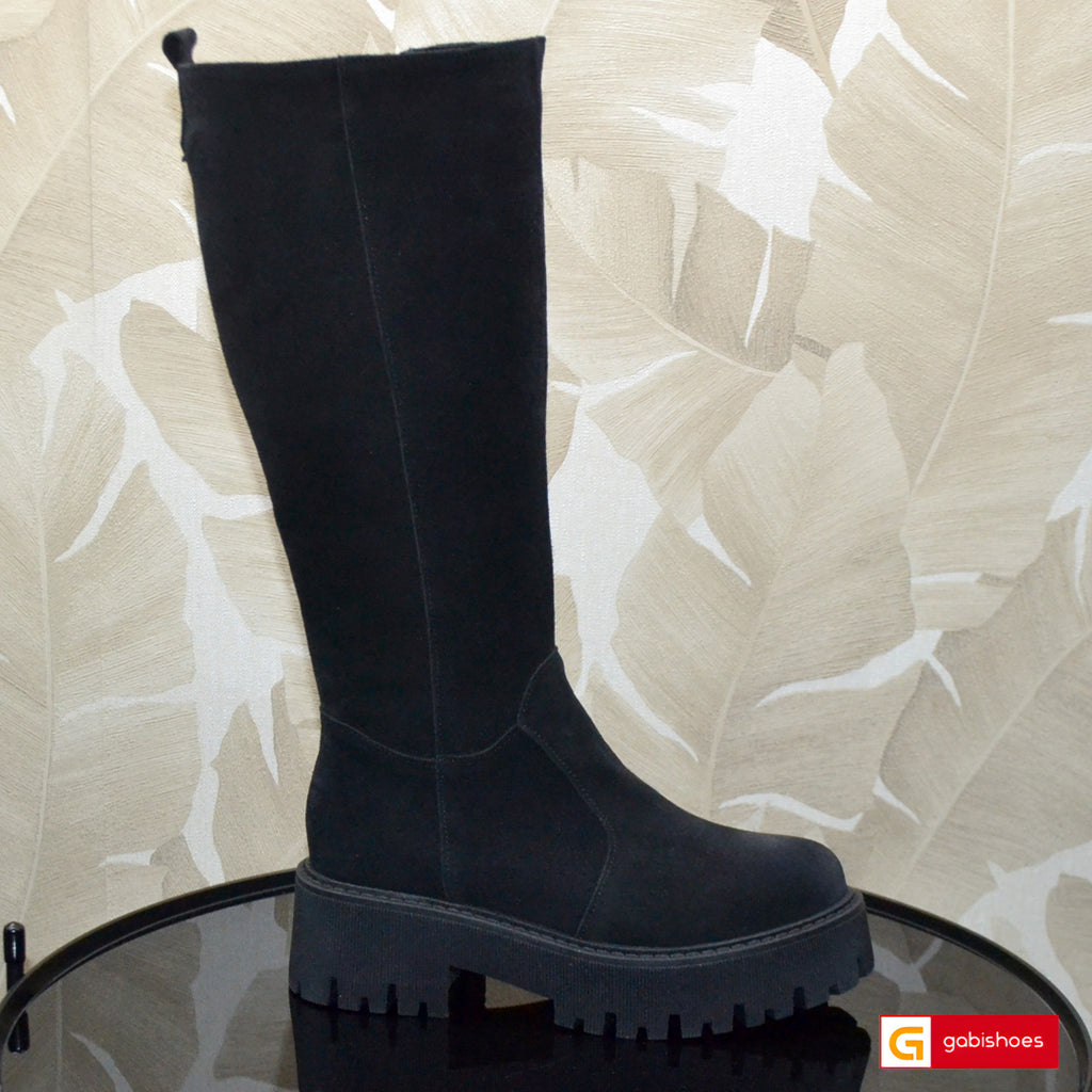 Cizme Dama Piele Naturala Intoarsa Neagra Lorena 3680-1
