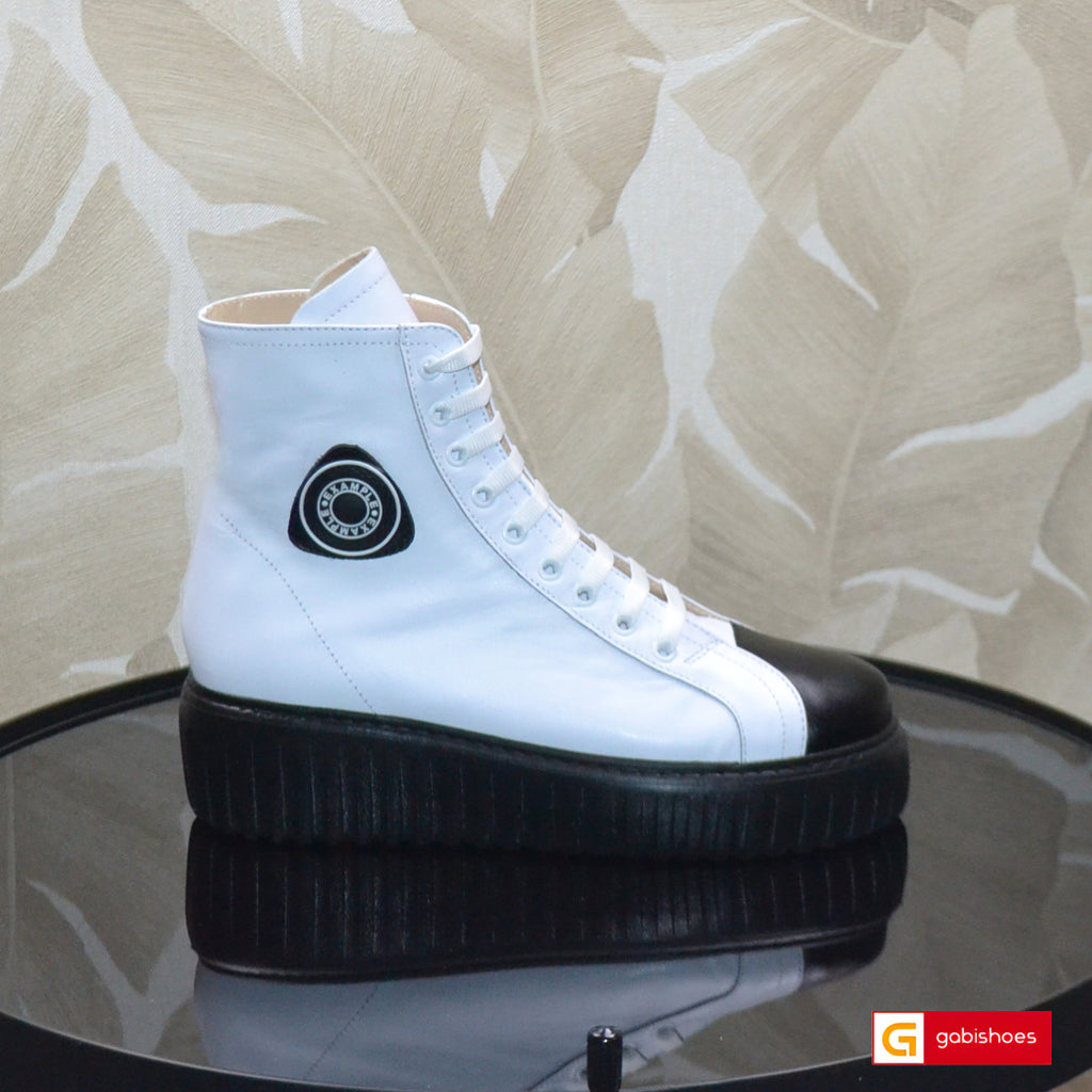 Ghete Sport Dama Piele Naturala Alb cu Negru Lorena 3598-1
