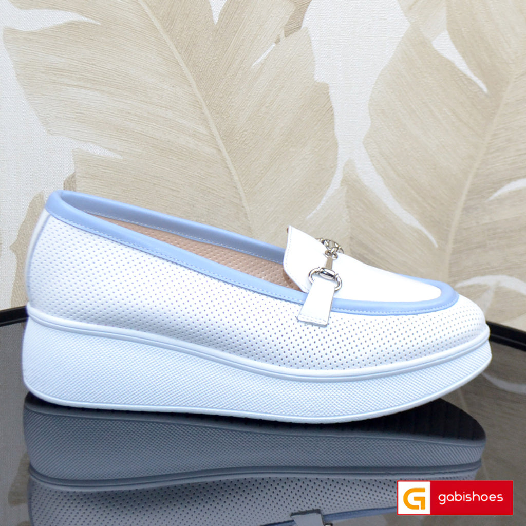 Pantofi Casual Piele Naturala Alba cu Blue , Lorena TOKIO 1851-2