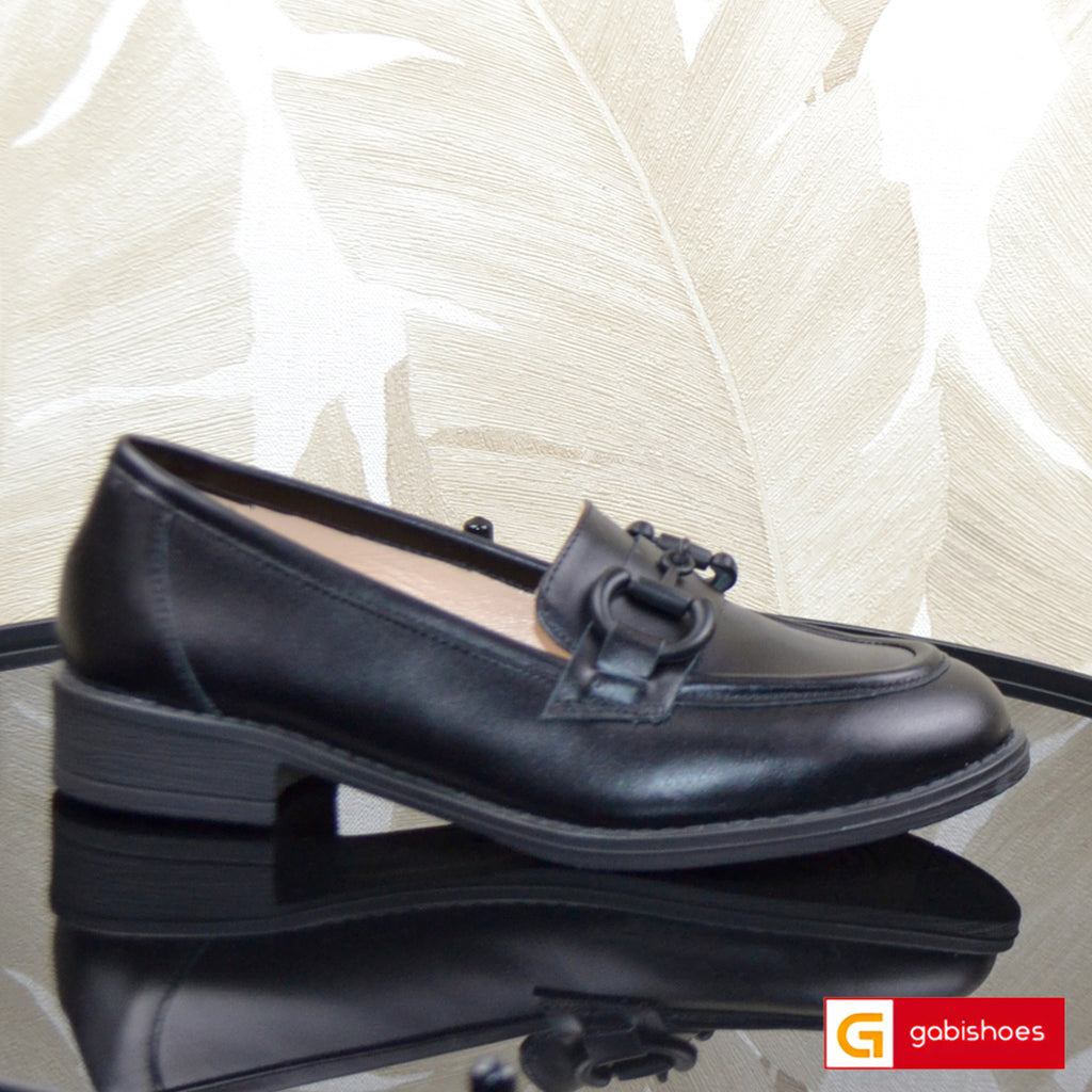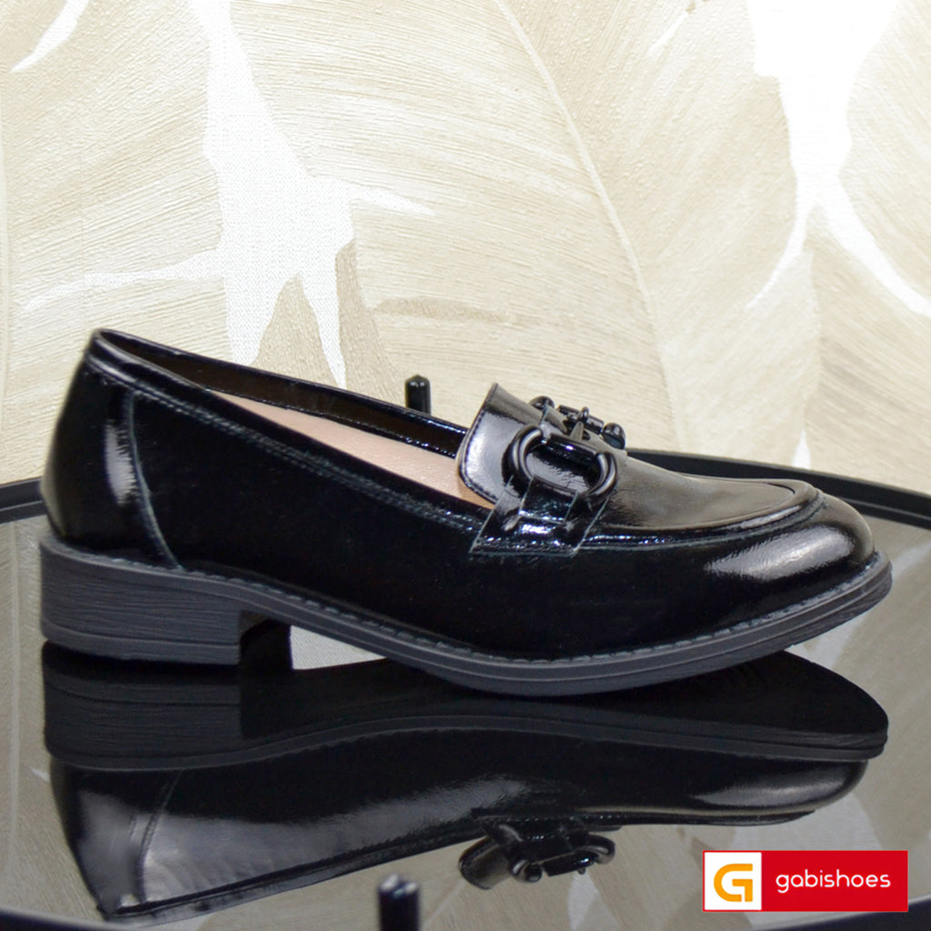Balerini Piele Naturala Lucioasa Neagra Larisa 1728-3