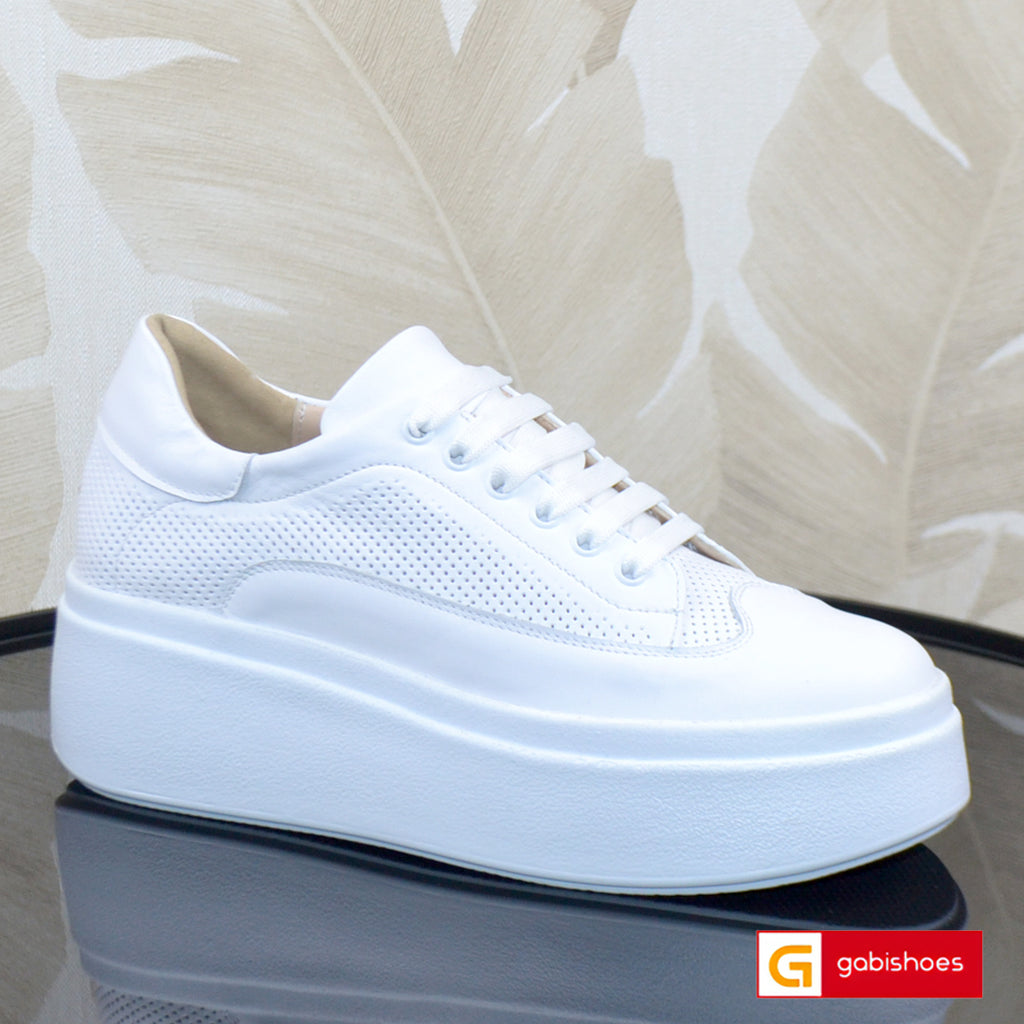 Pantofi Sport Piele Naturala Gabriela Alb TOKIO cu Siclam