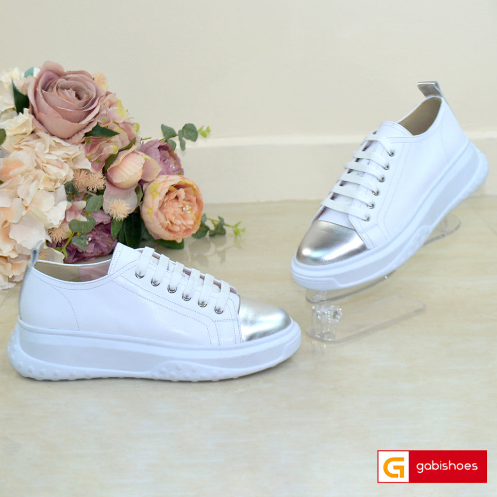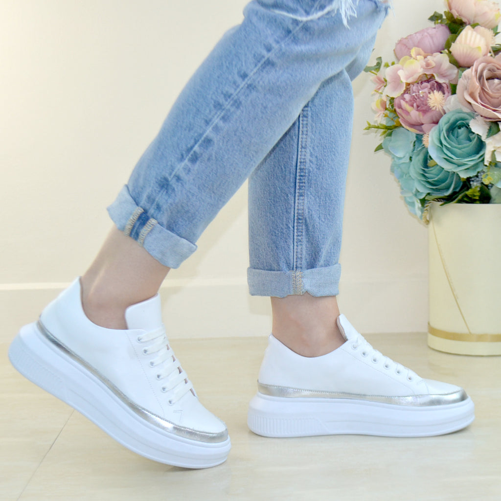 Pantofi Sport Piele Naturala Alb cu Argintiu Sandra XXIII
