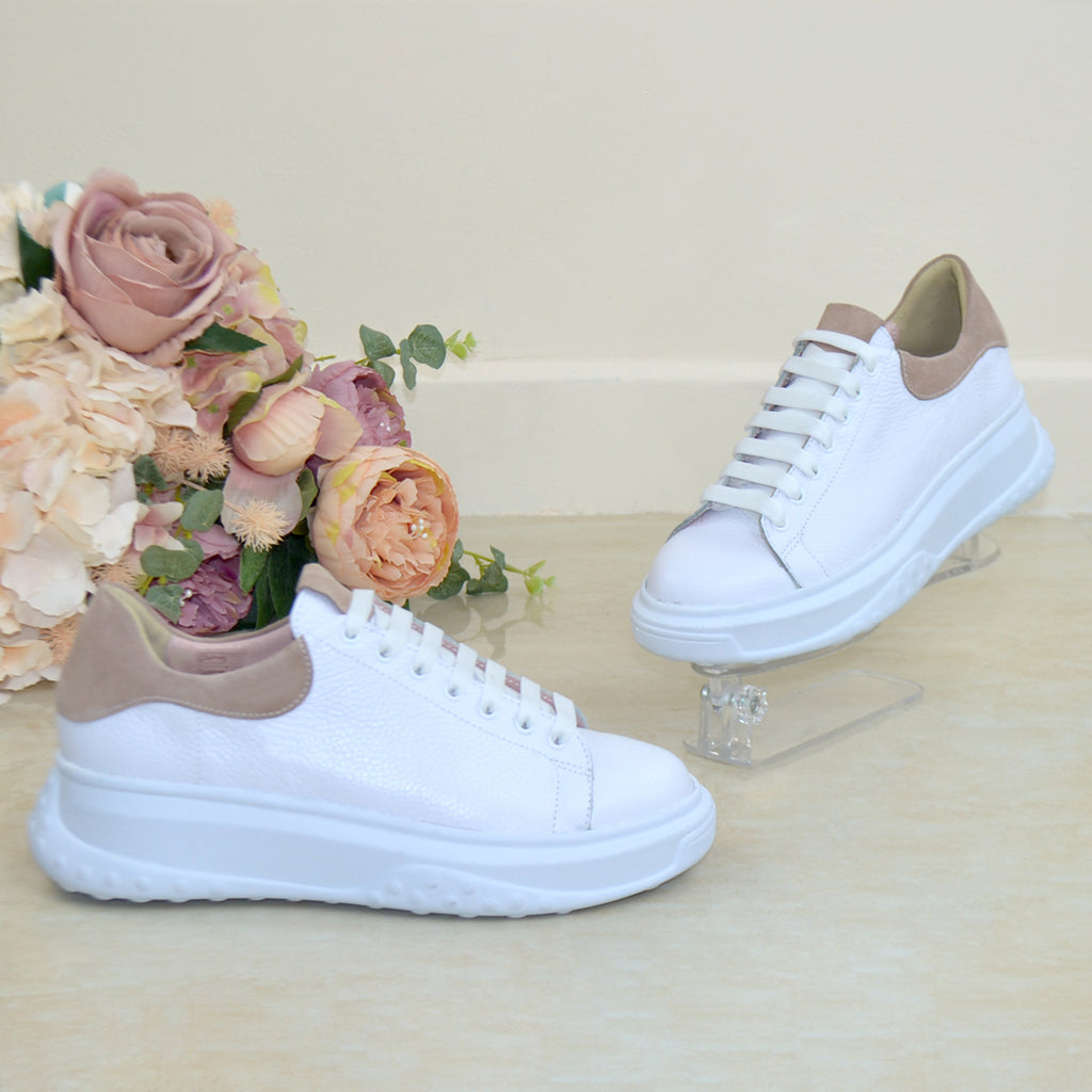 Pantofi Sport Piele Naturala Lorena 1051 Pudra TOKIO