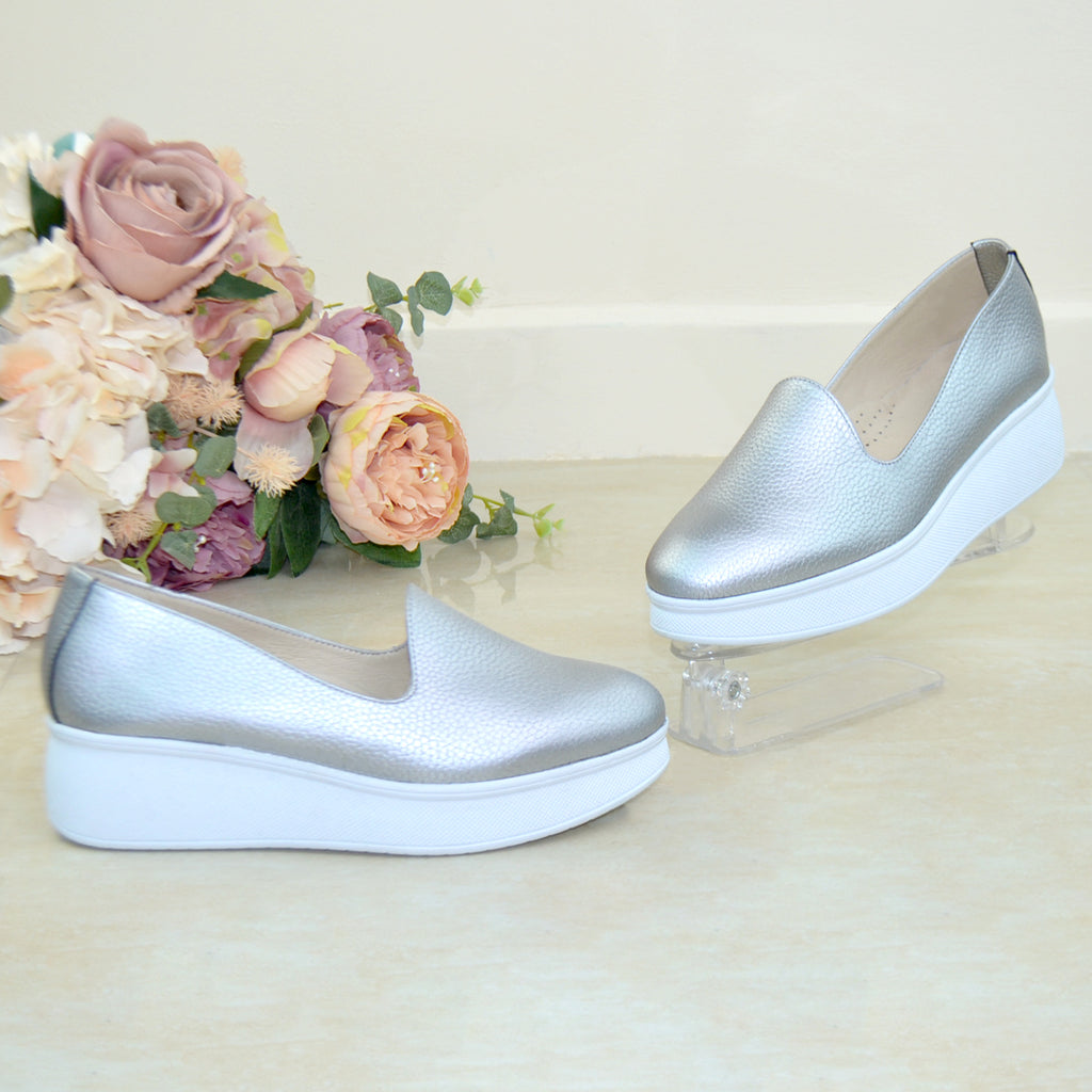 Pantofi Sneakers Piele Naturala Argintiu Susan VI