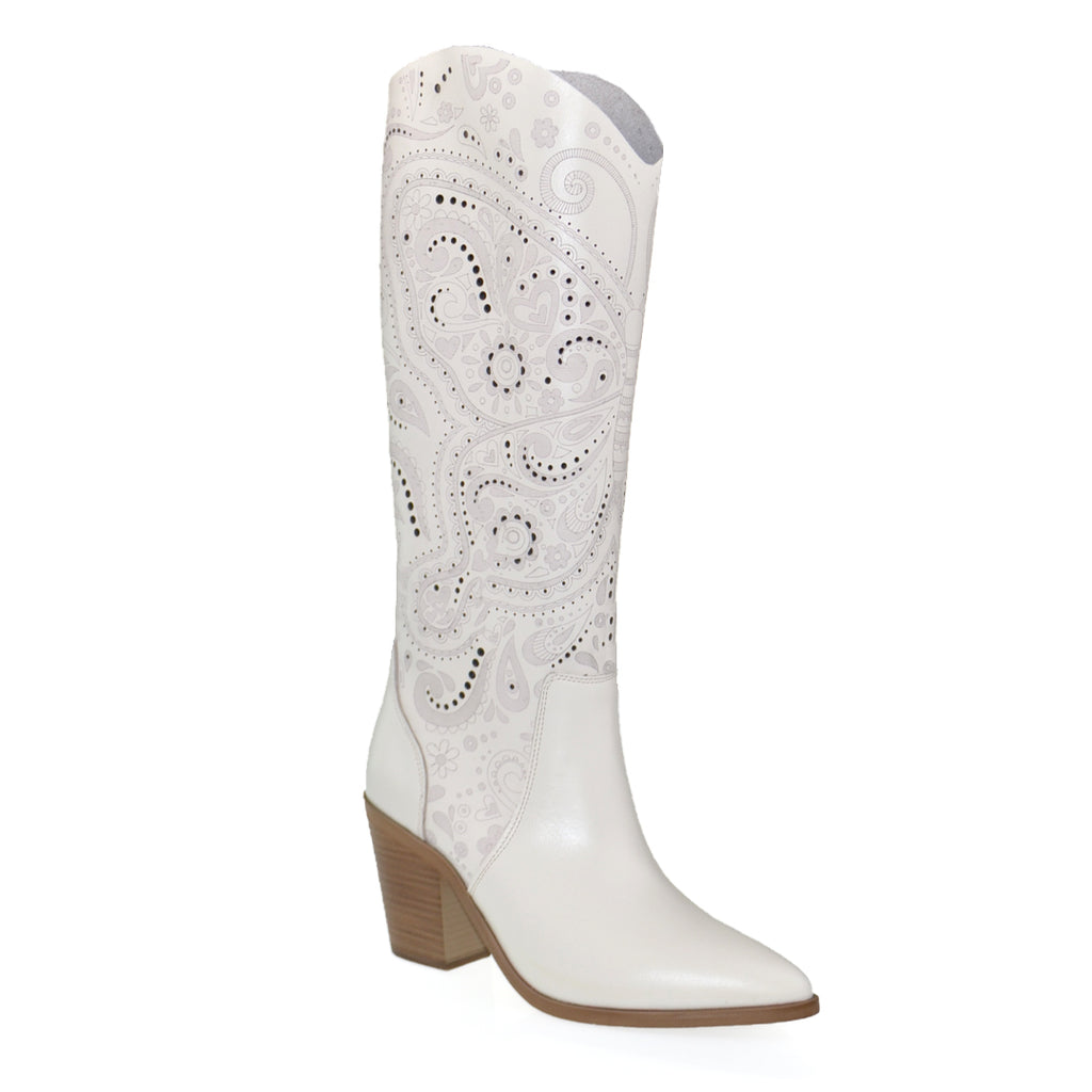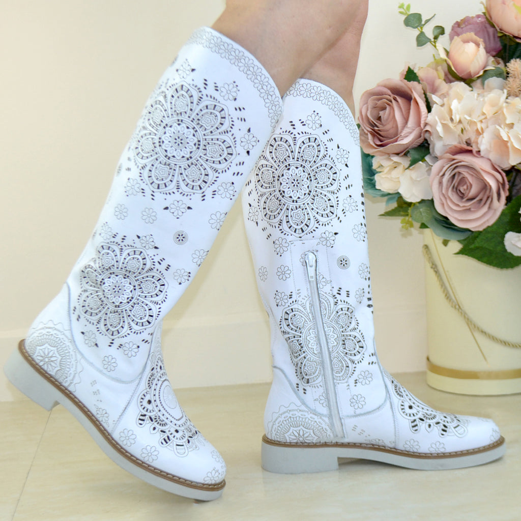 Cizme Bej Perforate Piele Naturala Mary XVI