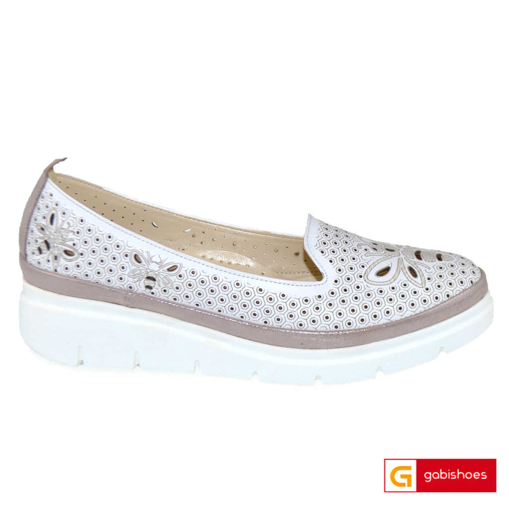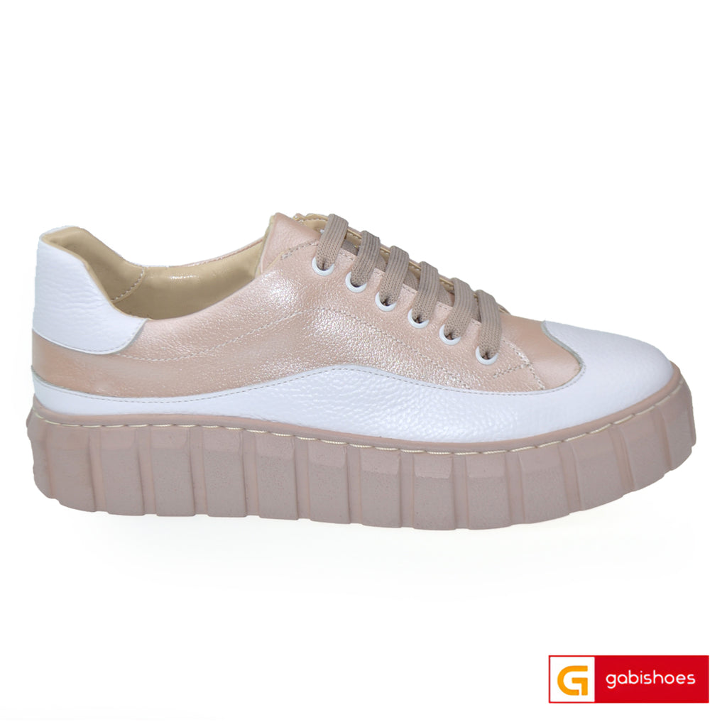 Pantofi Casual Piele Naturala Gabriela Taupe cu alb TOKIO 186-6