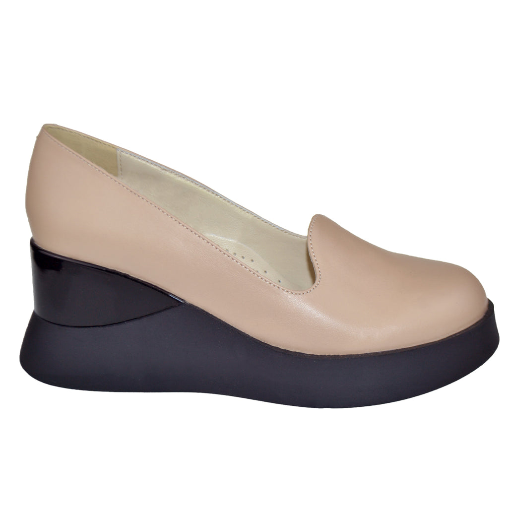 Pantofi Casual Piele Naturala Bej cu Negru Lorena XII