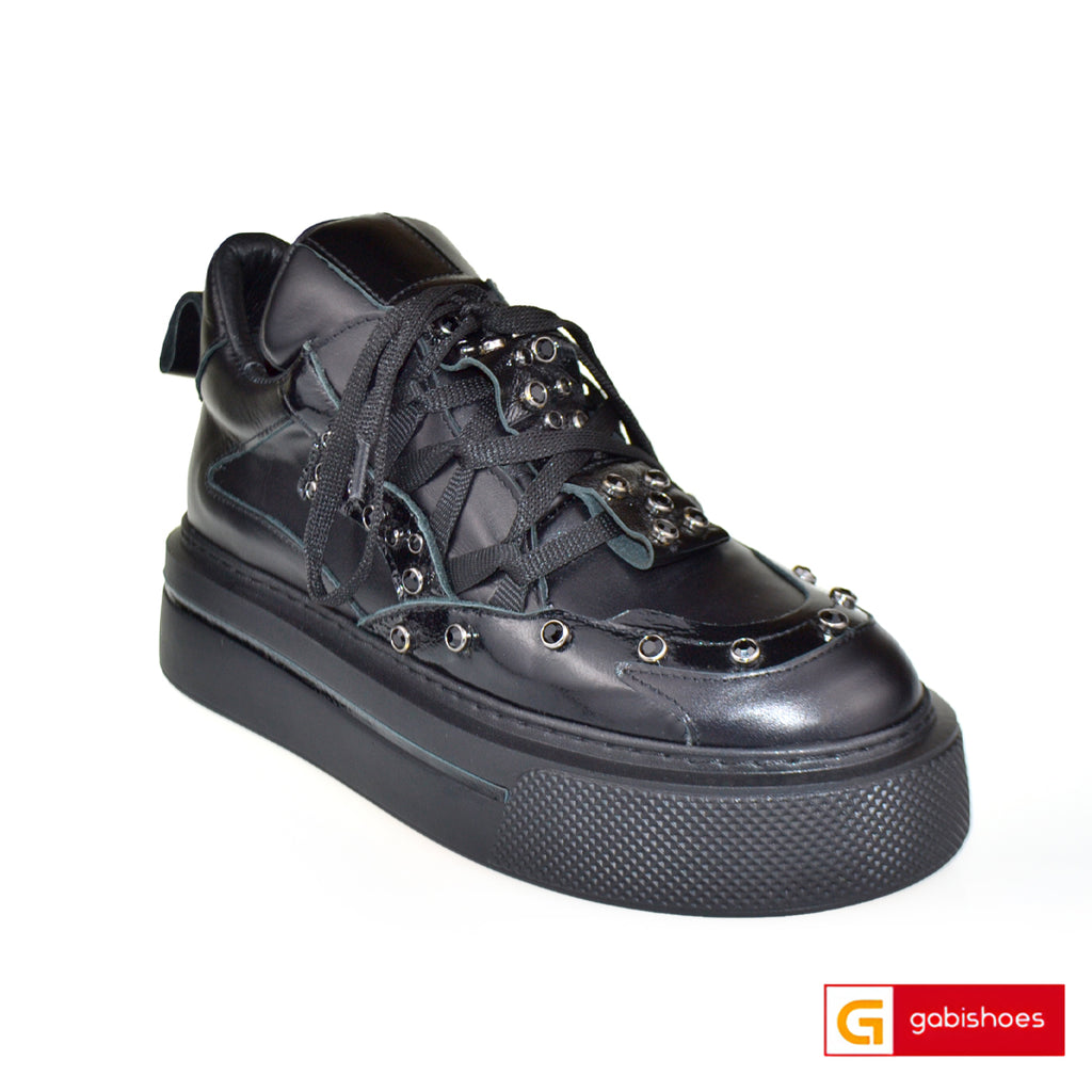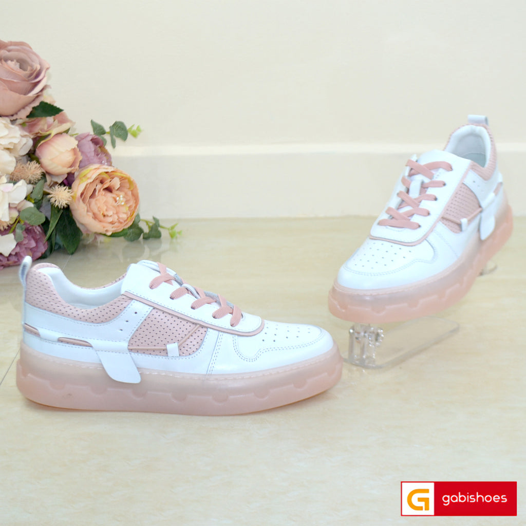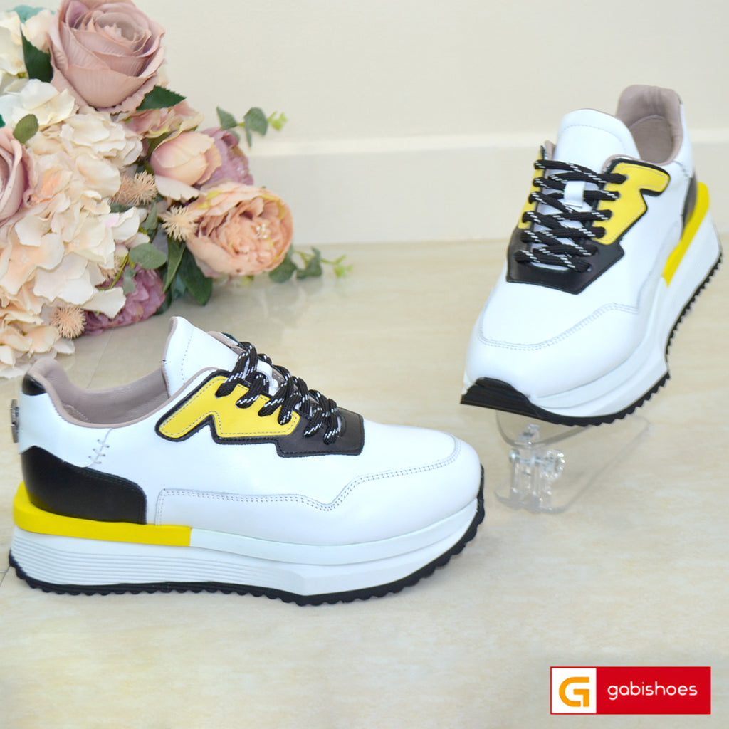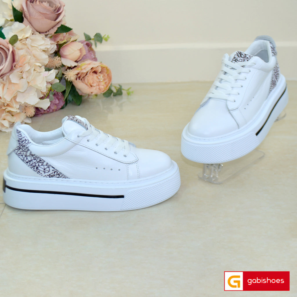 Pantofi Casual Piele Naturala Alba cu Negru Gabina 548