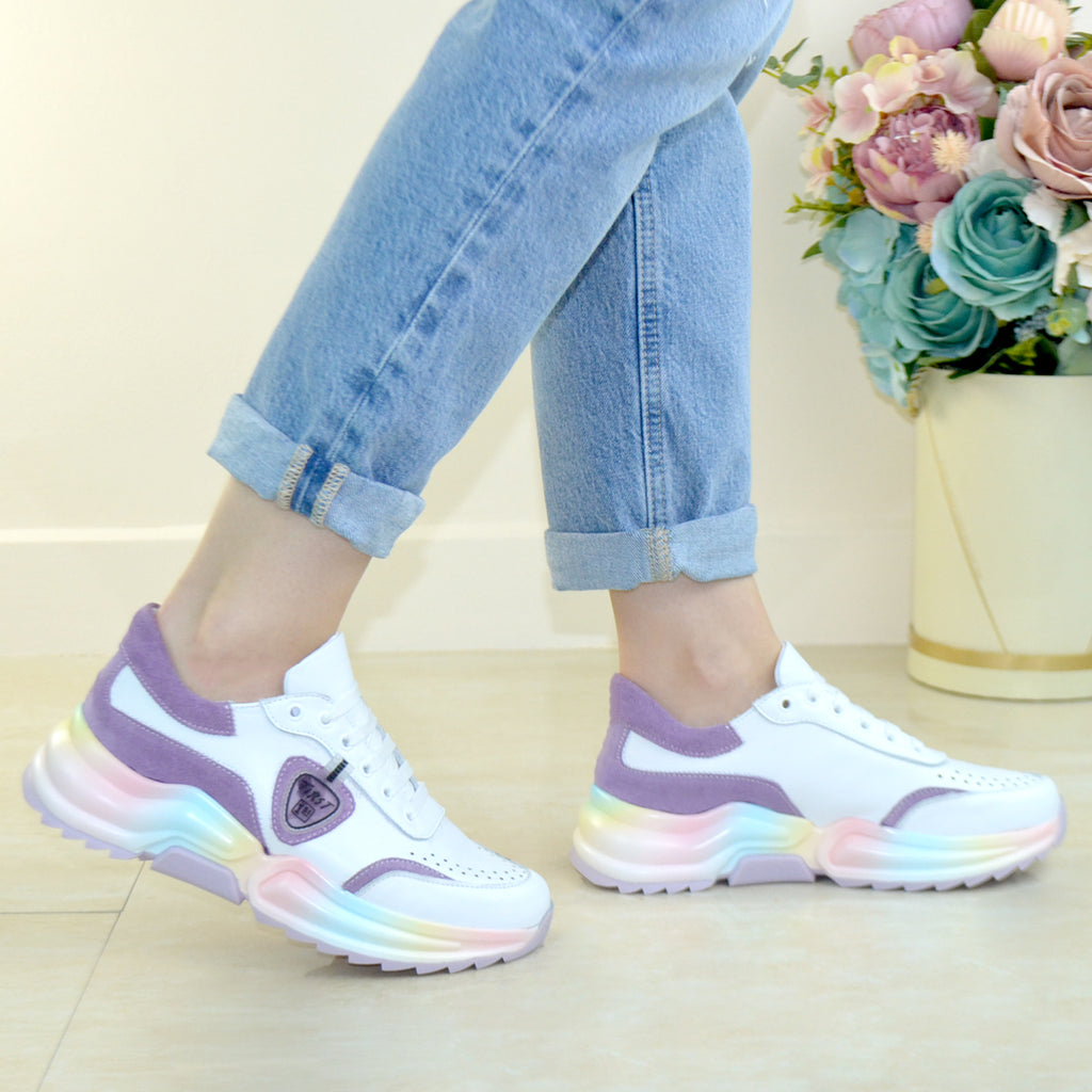 Pantofi Sport Alb cu Mov Piele Naturala Lorena 1395-1