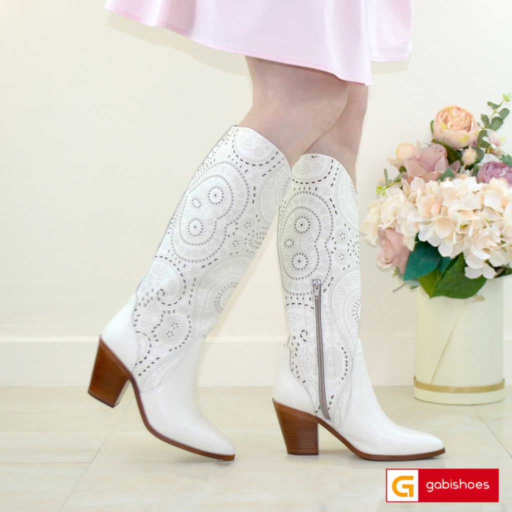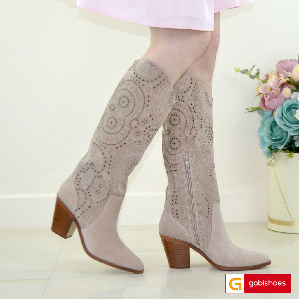 Cizme Dama Piele Naturala Bej Perforate cu Fermoar Camelia 1793-3