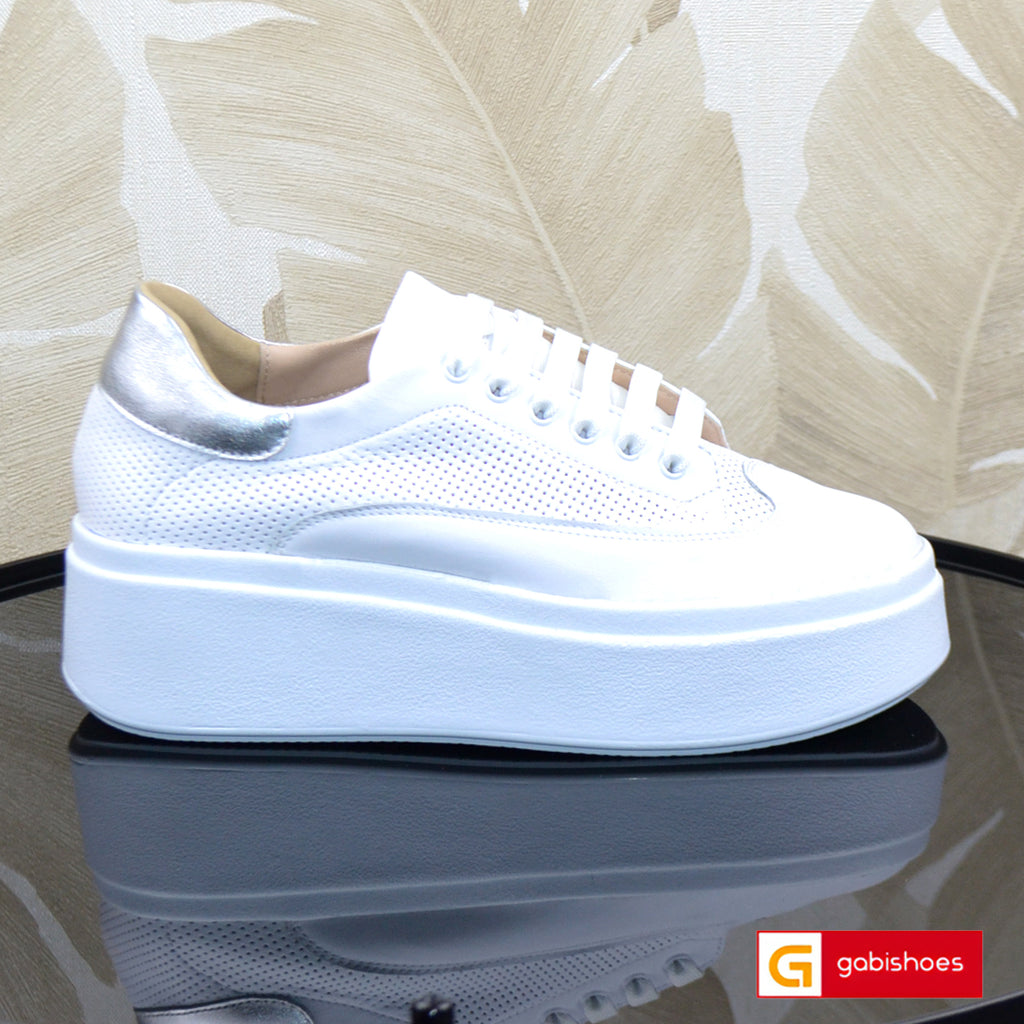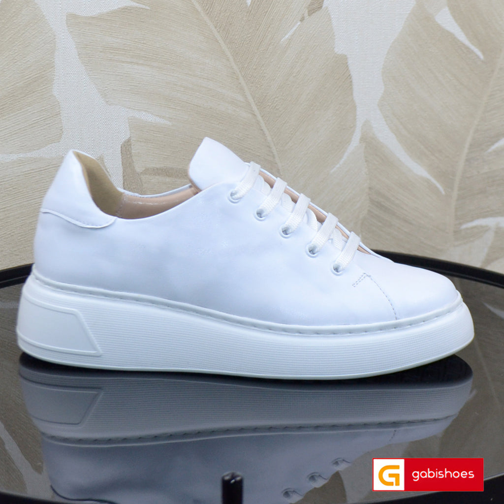 Pantofi Sport Piele Naturala Gabriela Alb TOKIO cu Siclam