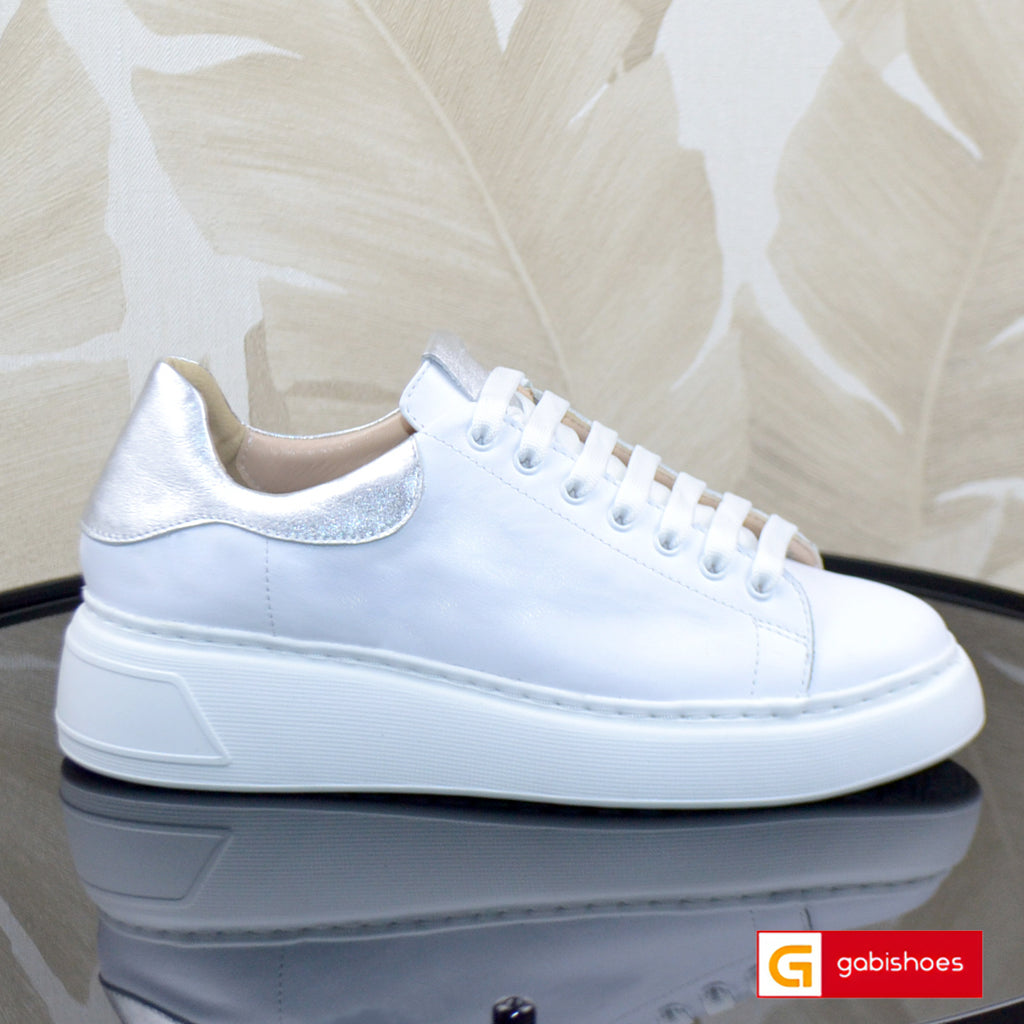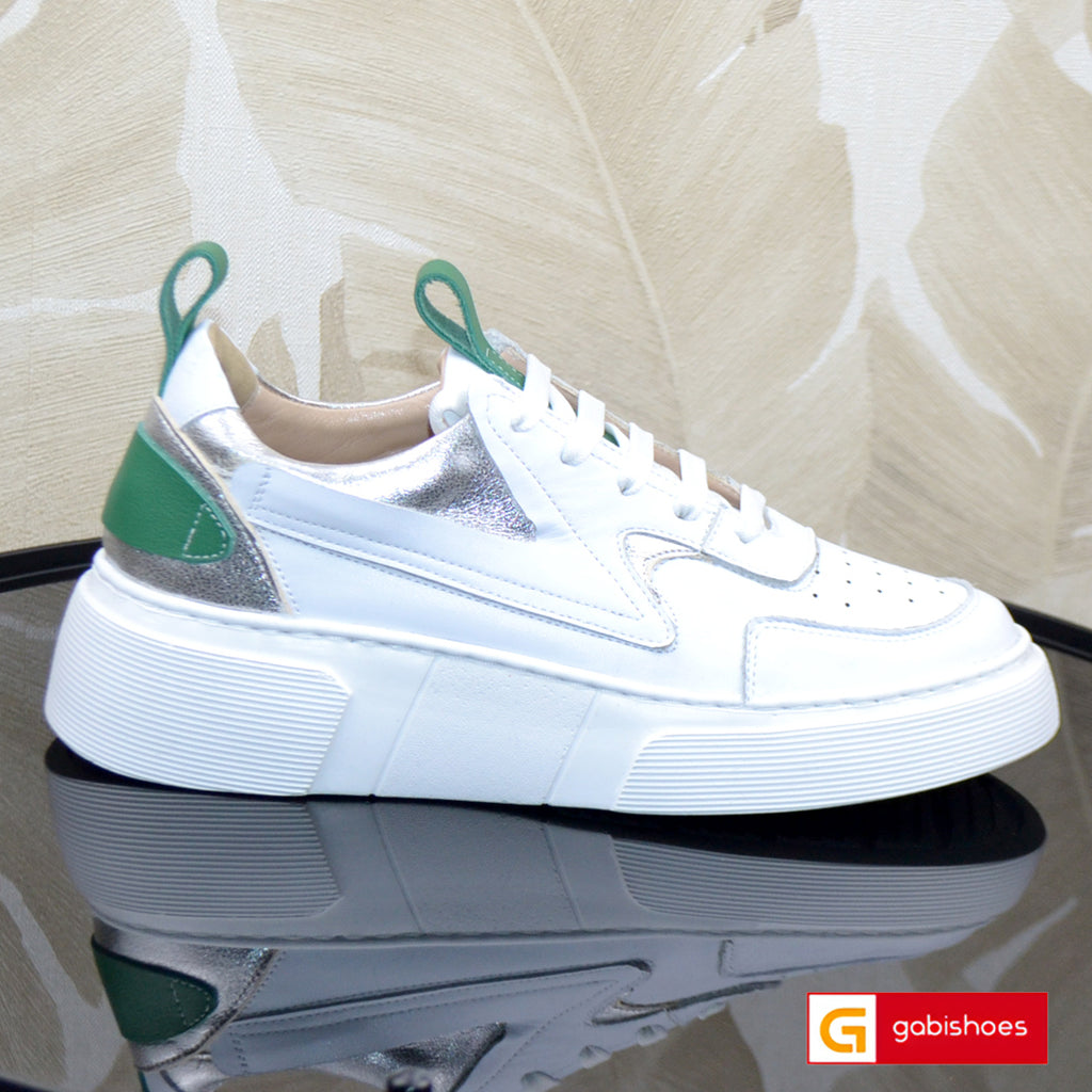 Pantofi Sport Piele Naturala Alb cu Argintiu Camy XXIII-2