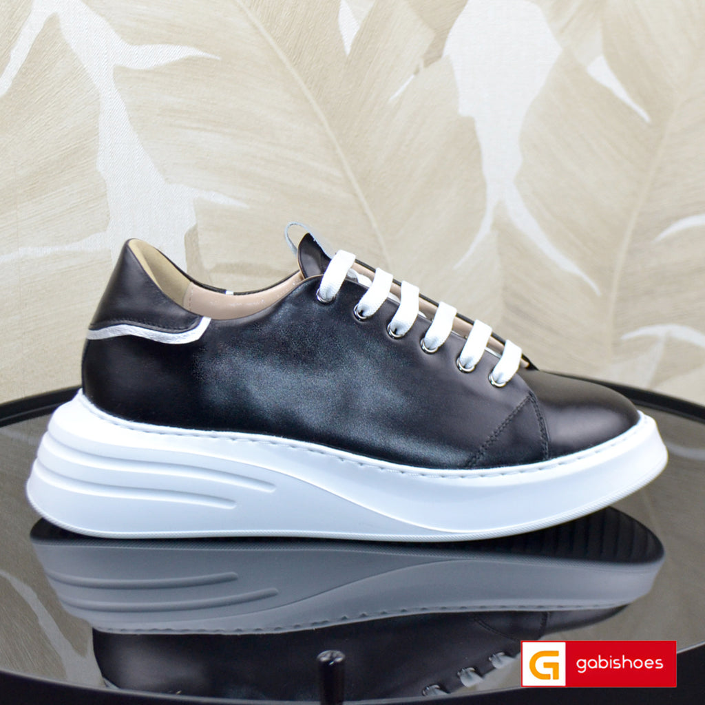 Pantofi Sport Piele Naturala Negru cu Alb Camy XXIII