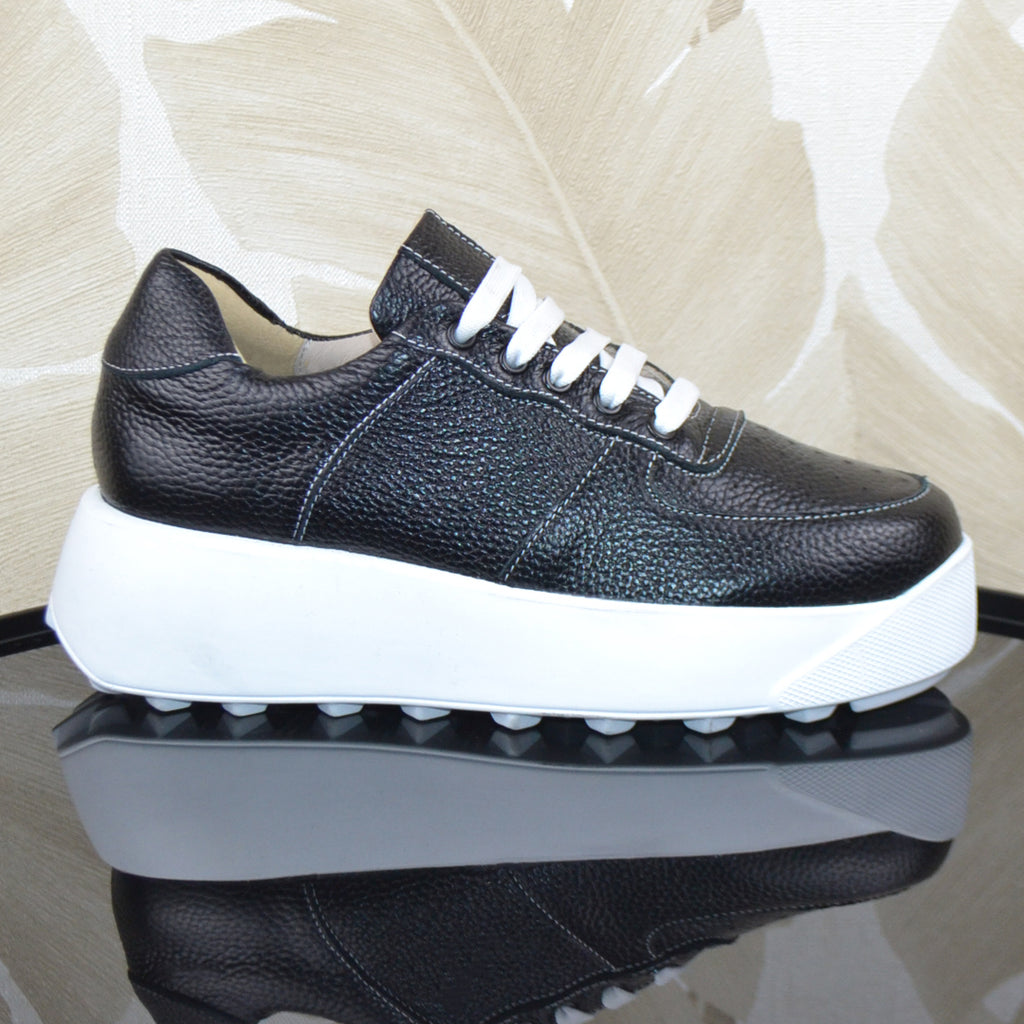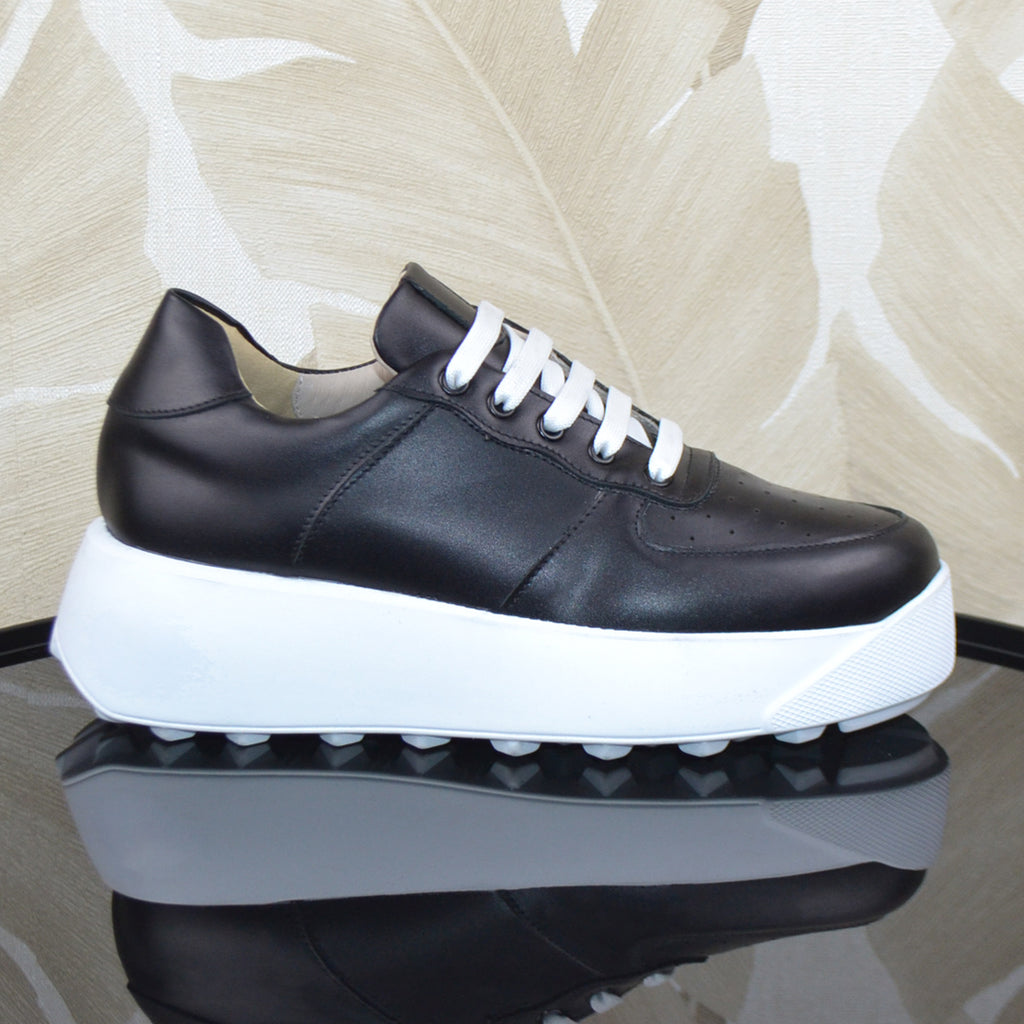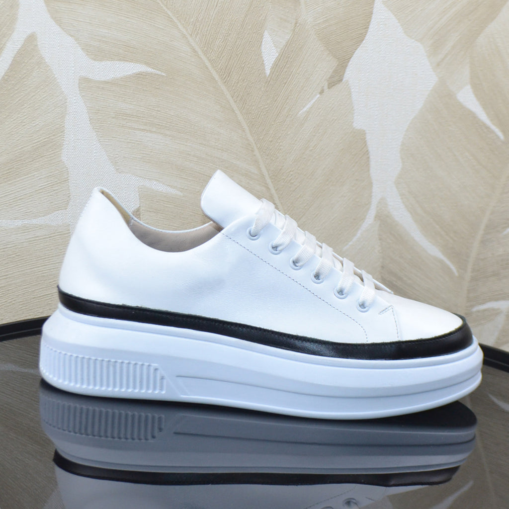 Pantofi Sport Piele Naturala Alb cu Negru Sandra 1604-1