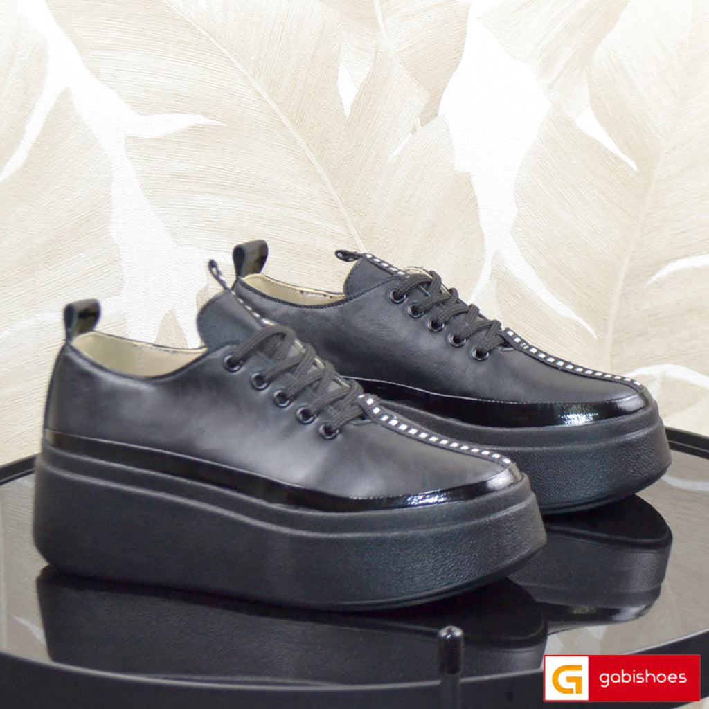 Balerini Piele Naturala Lucioasa Neagra Larisa