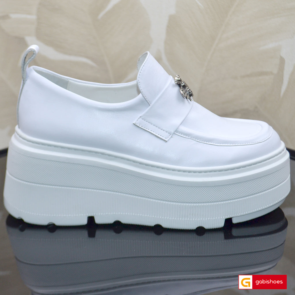 Pantofi Sport Piele Naturala Alb cu Teupe Lorena 3826-1
