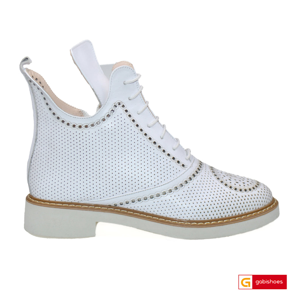 Ghete Perforate Piele Naturala Mary Alb TOKIO