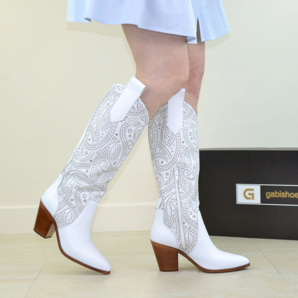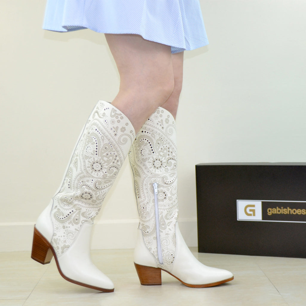 Cizme Dama Albe Perforate cu Fermoar Camelia 1749-1