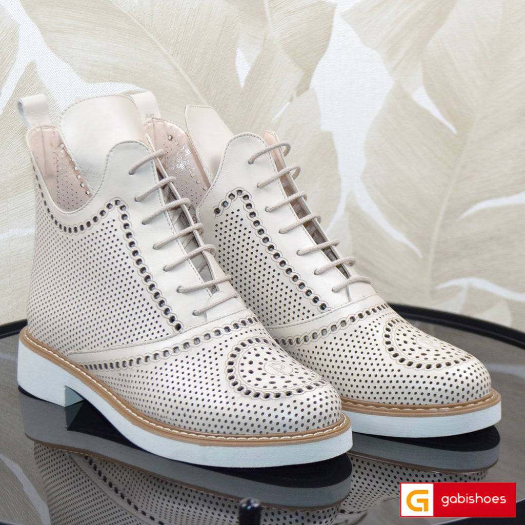 Ghete Perforate Piele Naturala Mary Bej TOKIO