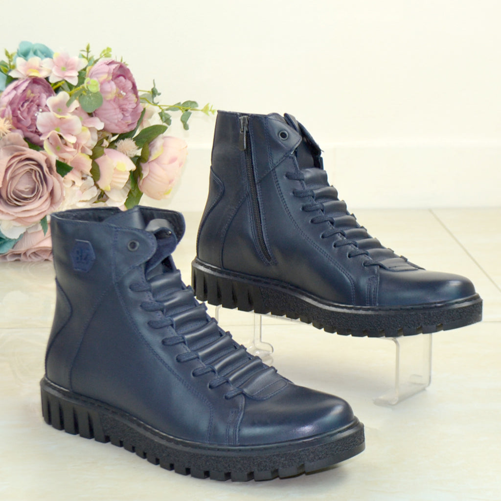 SNEAKERS Piele Naturala Intoarsa Blue TOKIO